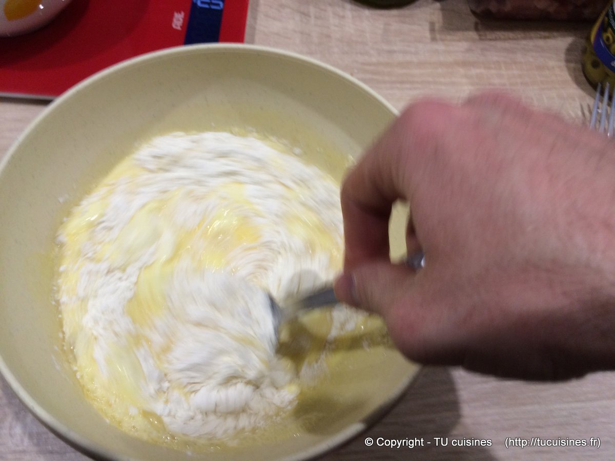 - T'as rien compris ? OK : verse les oeufs+lait du bol dans la farine+levure dans le saladier