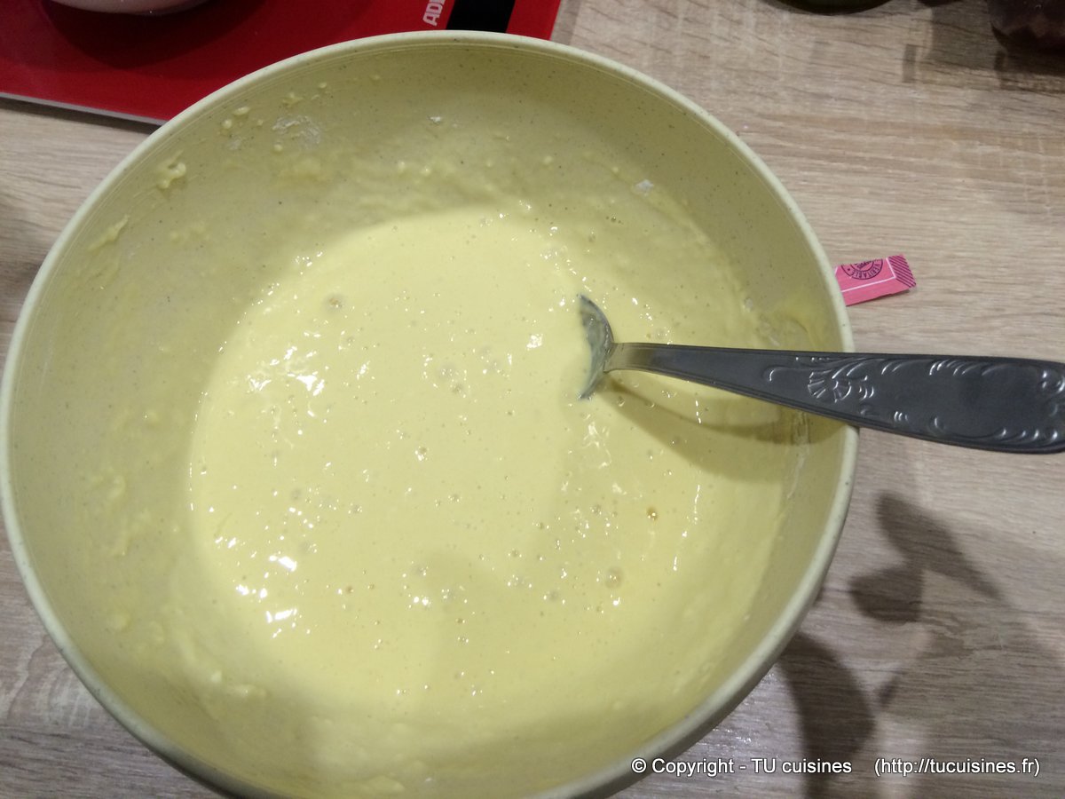 - Puis mélange BIEN: assez longtemps pour obtenir une belle pâte homogène et sans grumeaux...