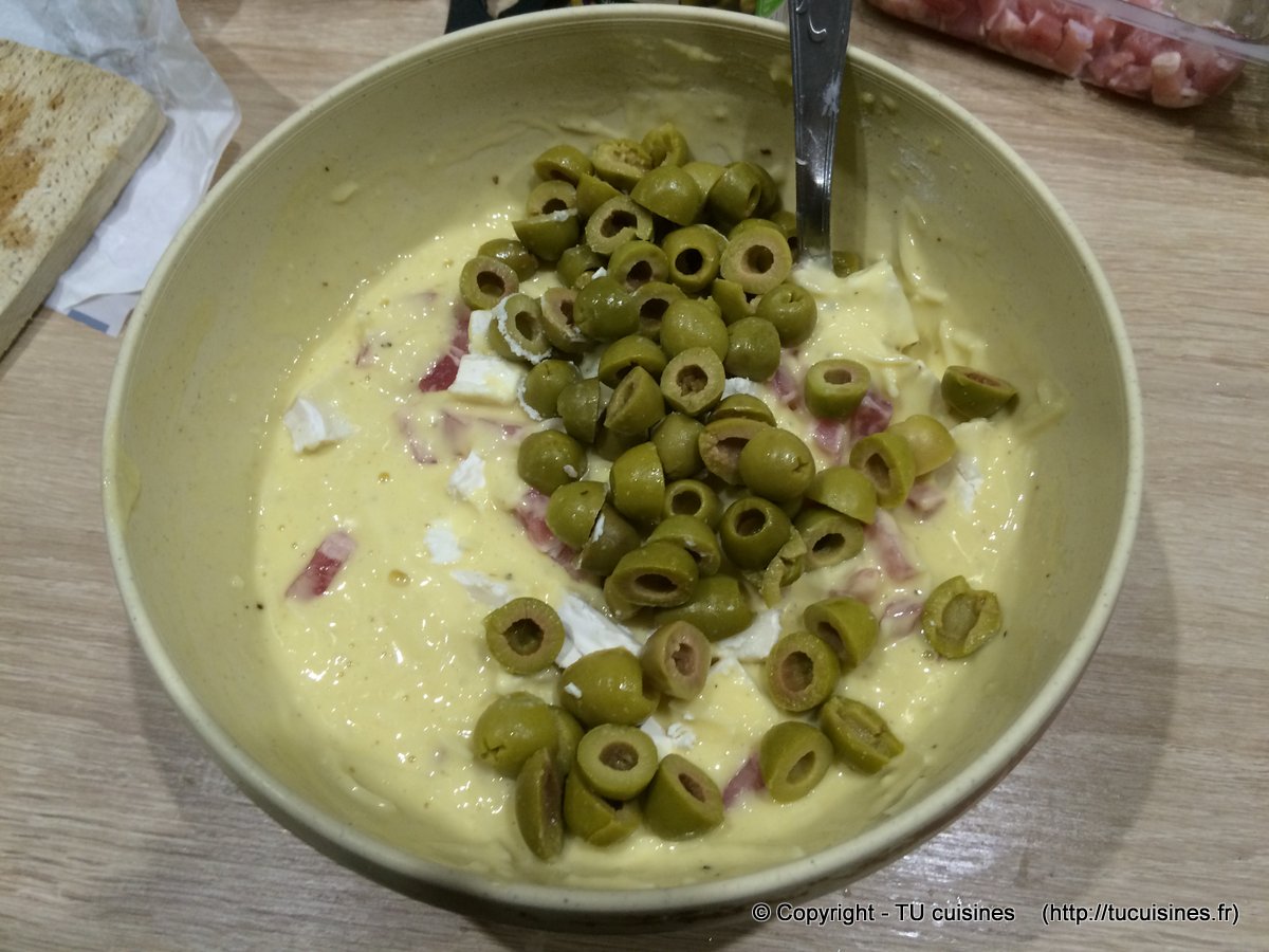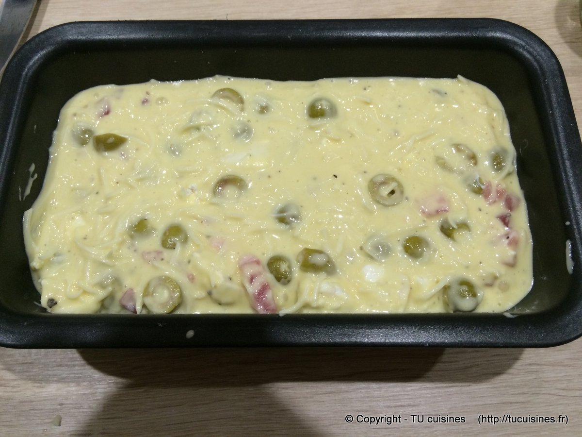 Recette de cake salé aux olives, fromage de chèvre et lardons