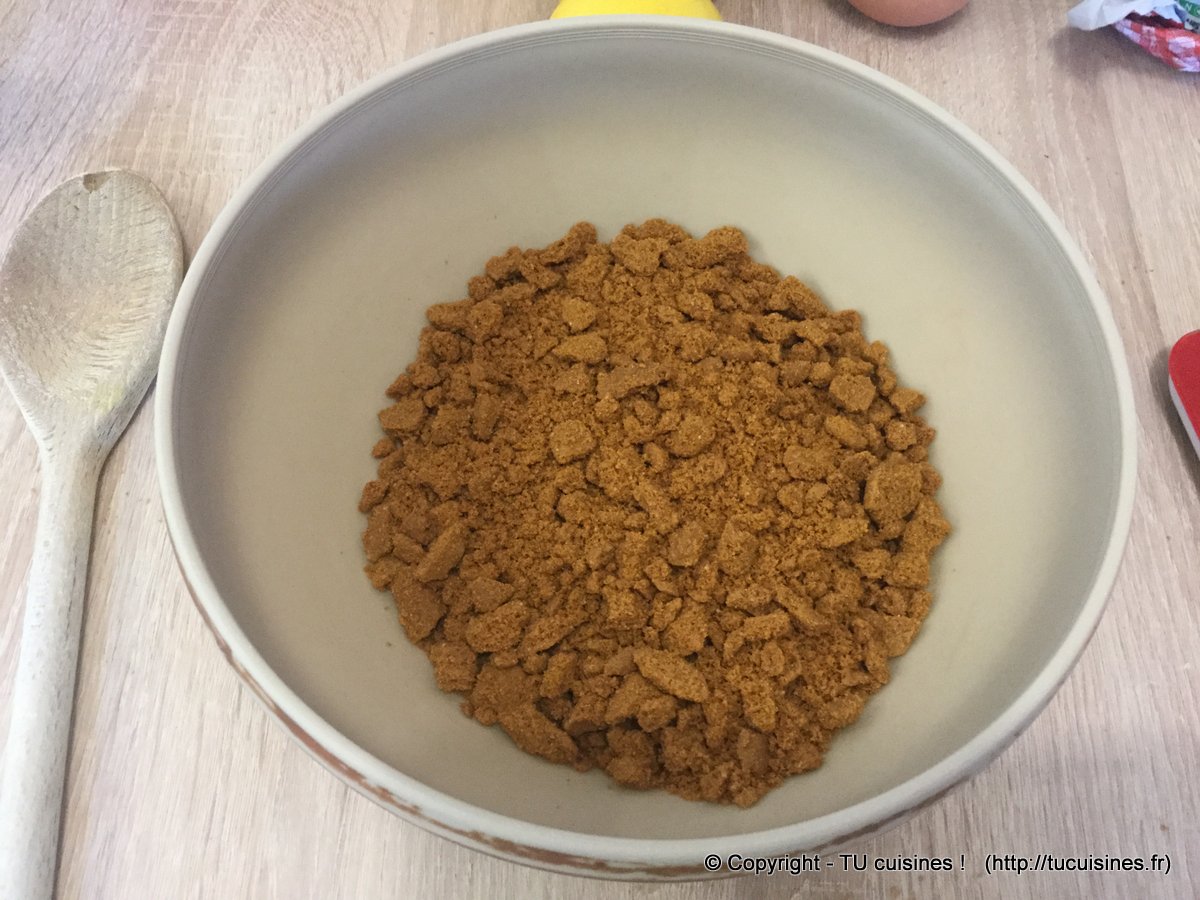 - Écrase les biscuits speculoos (ou petit beurre) grossièrement.