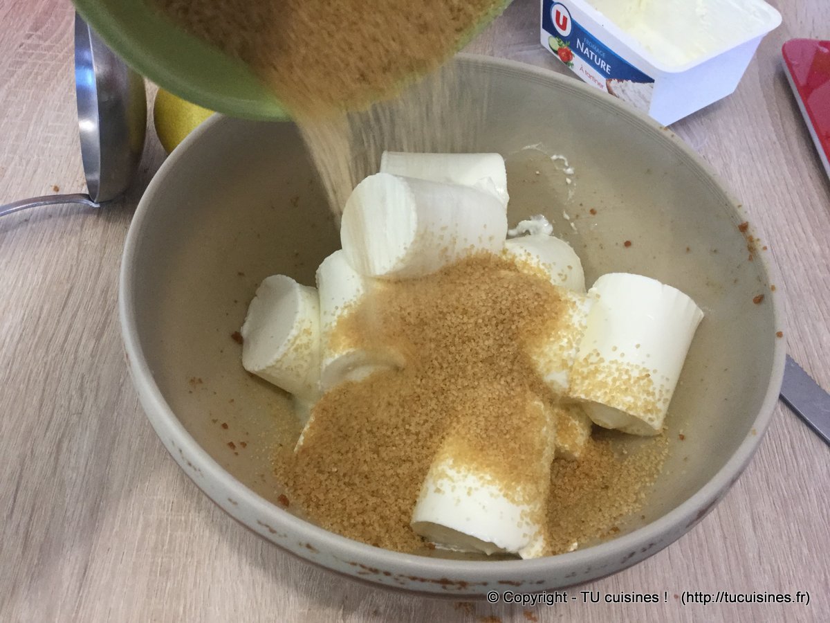 - Démoule 12 petits suisses (ou 750 g de fromage blanc) dans un saladier