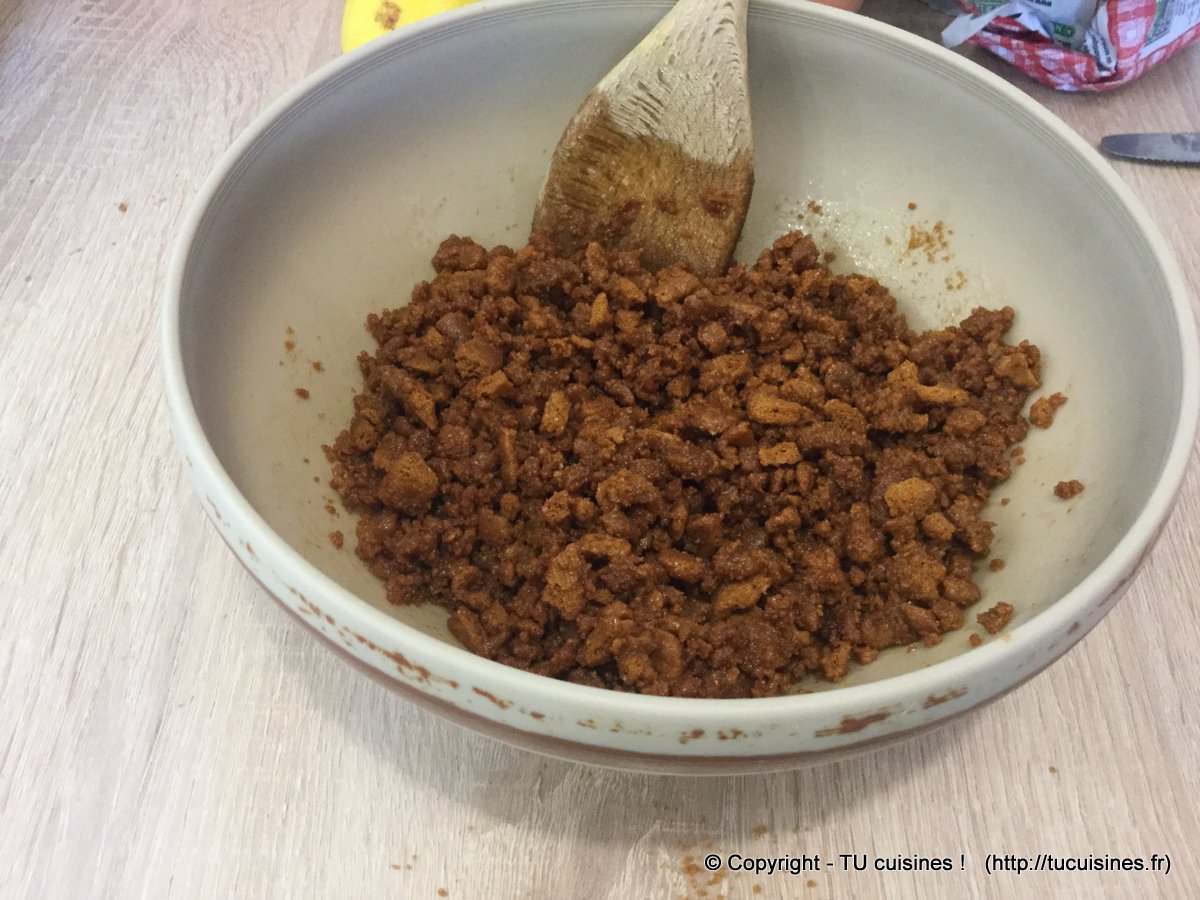 - Écrase les biscuits speculoos (ou petit beurre) grossièrement.