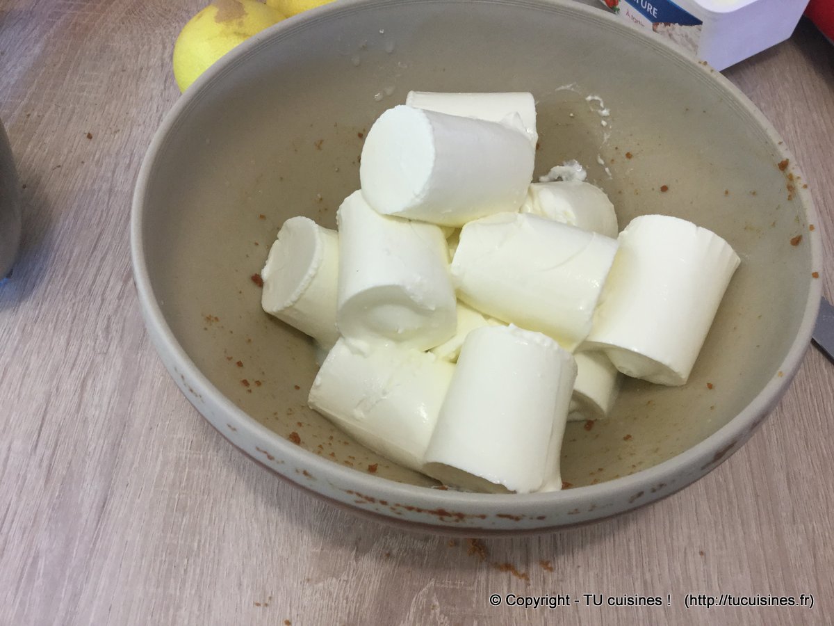 - Démoule 12 petits suisses (ou 750 g de fromage blanc) dans un saladier