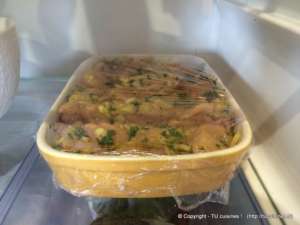 - Recouvre ton plat avec du film alimentaire et laisse reposer au réfrigérateur au minimum une heure (voire plus si tu as le temps, et jusqu'à une nuit sans soucis).