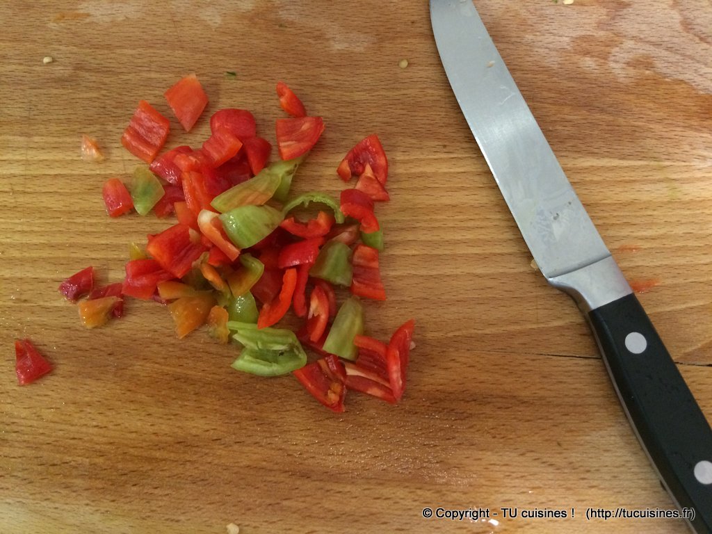 - Tu peux aussi ajouter quelques petits piments (plus ou moins doux selon ton goût) coupés finement