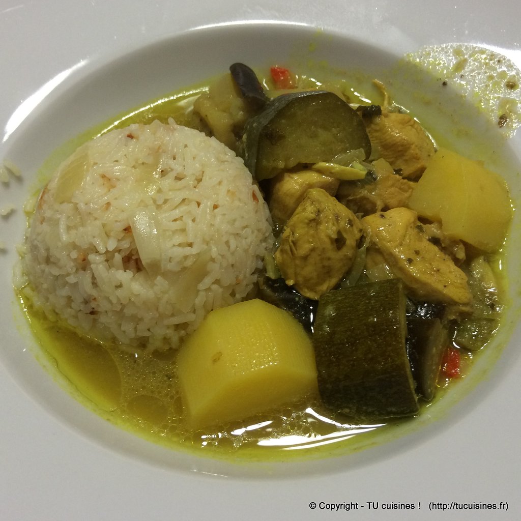 Pour la petite histoire, il s’agit en réalité d’un mode de préparation et d’un mélange d’épices (variante du curry) issus de la cuisine indienne, qui a été importé et adapté au 19ème siècle dans les Antilles, et qui en est ainsi devenu un élément traditionnel fort de la cuisine antillaise (source : Wikipedia).