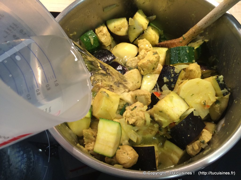 6. Mouille à hauteur avec de l'eau + les épices à colombo