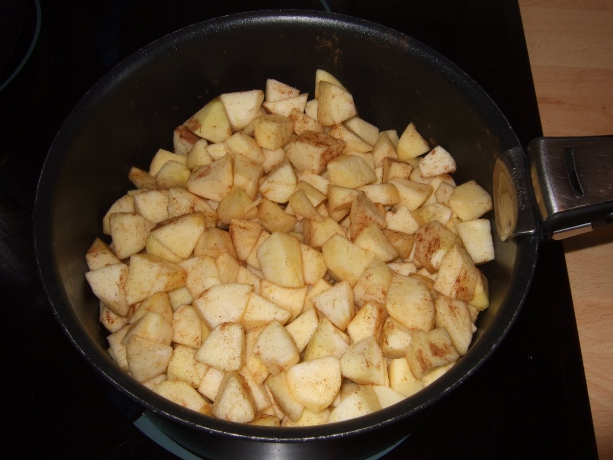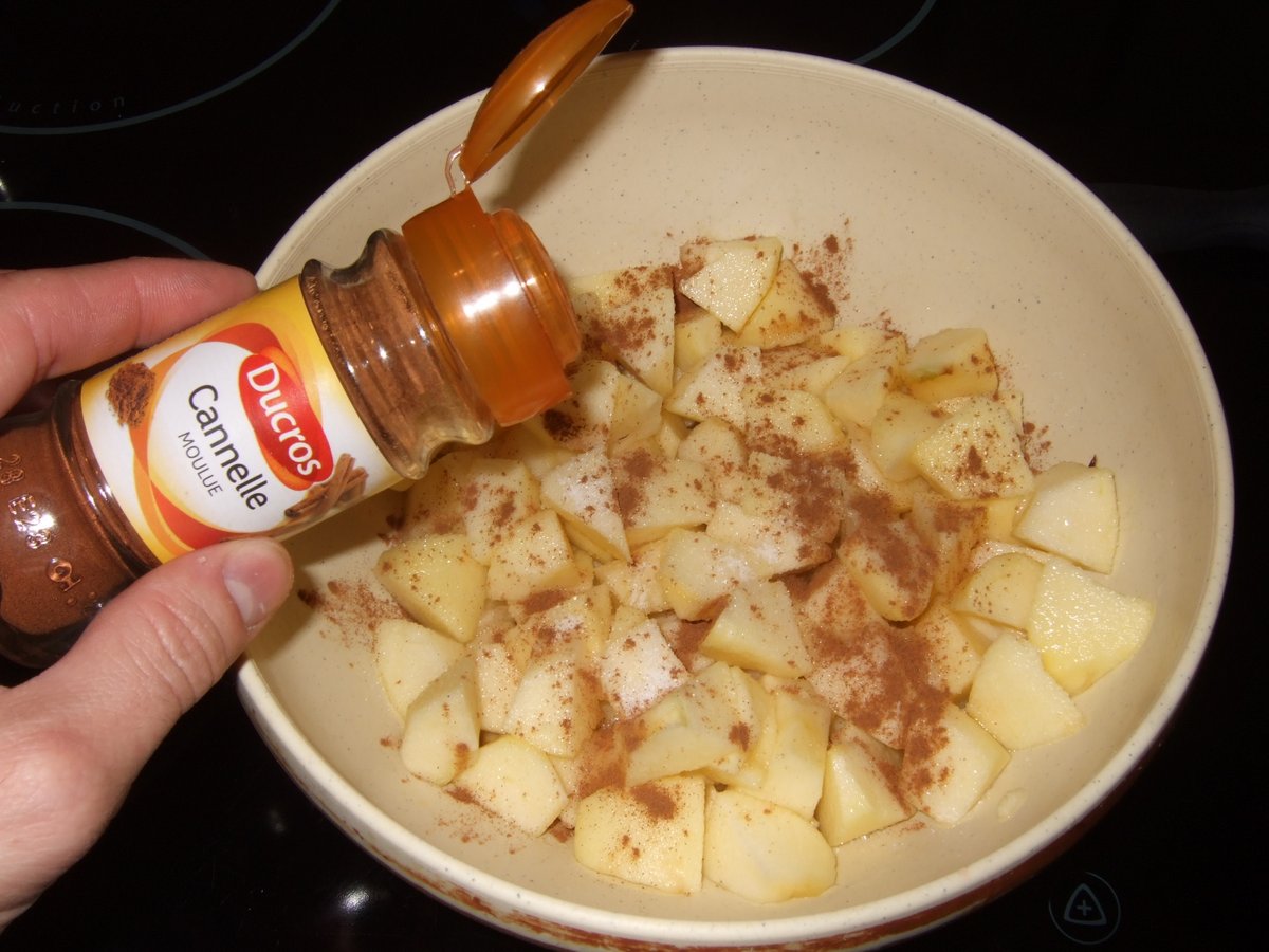 2. Ajoute si besoin un tout petit peu d'eau, et saupoudre avec un peu de sucre (de canne, vanillé, ...) et de cannelle.
