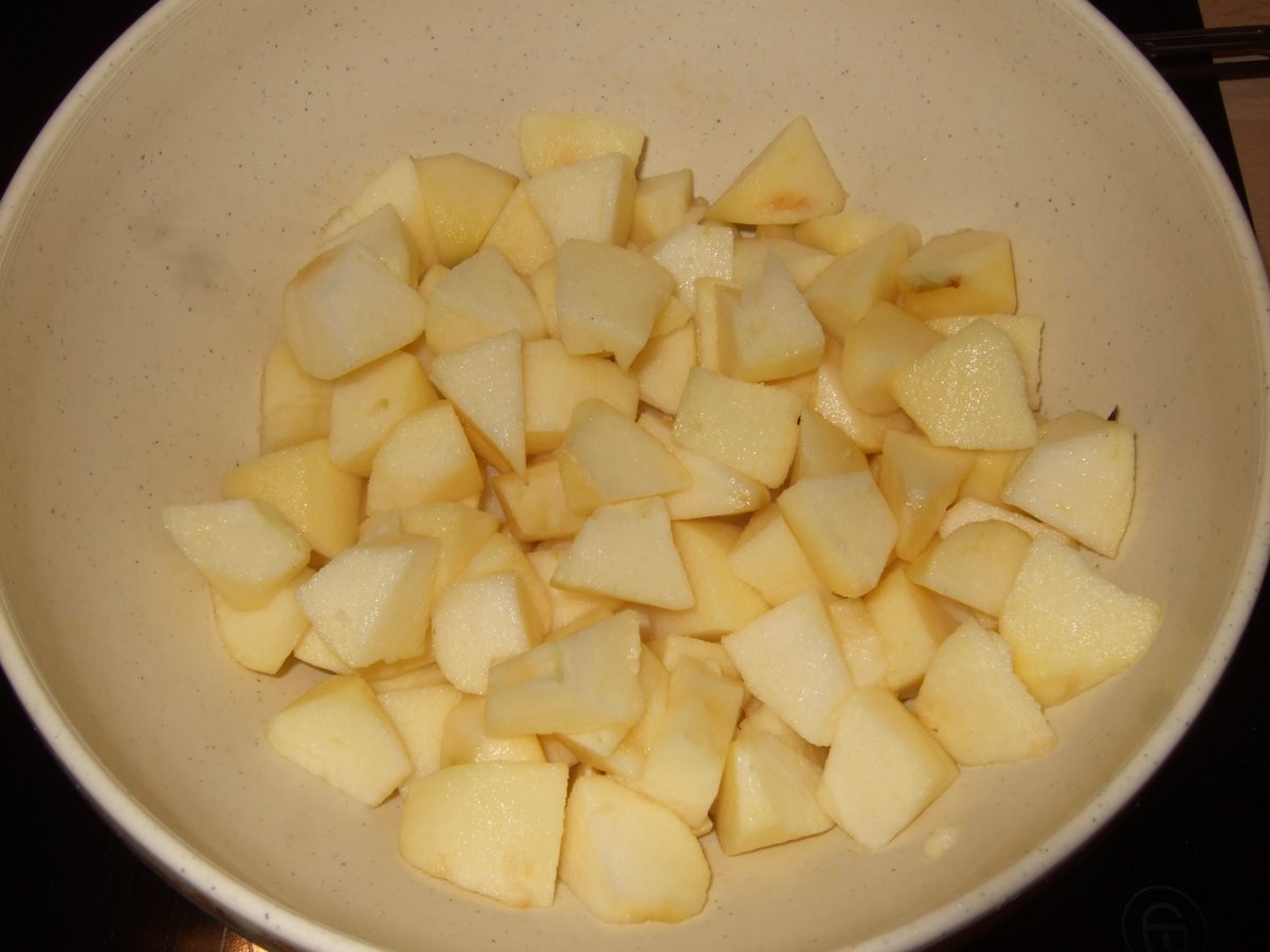1. Épluche les pommes (et éventuellement d'autres fruits de ton choix), puis coupe-les en dés.
