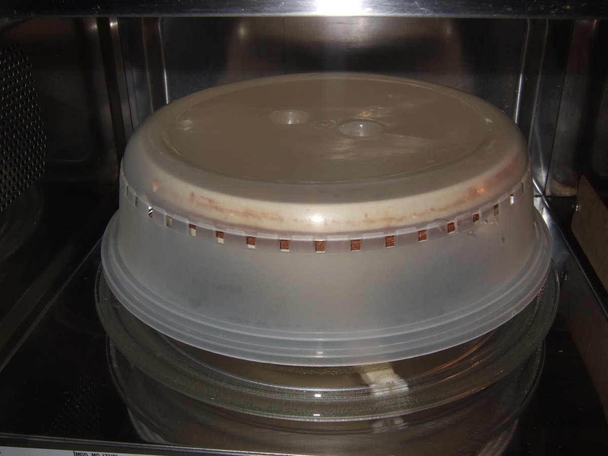 2. Couvre avec une cloche et laisses cuire à 800W pendant environ 5 à 10 minutes, en remuant à mi-temps.
