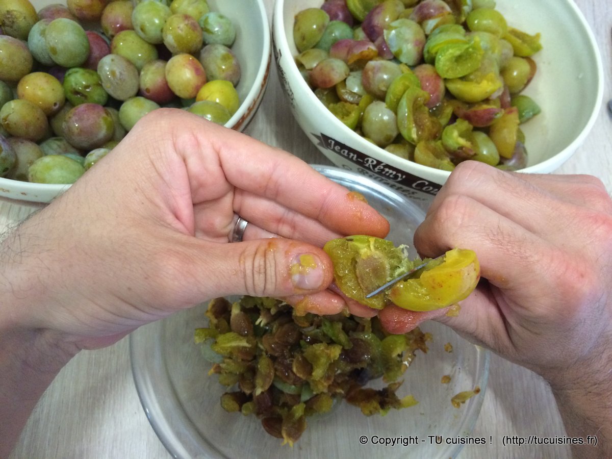 Compte environ 40 minutes seul pour dénoyauter 2 kg de prunes.