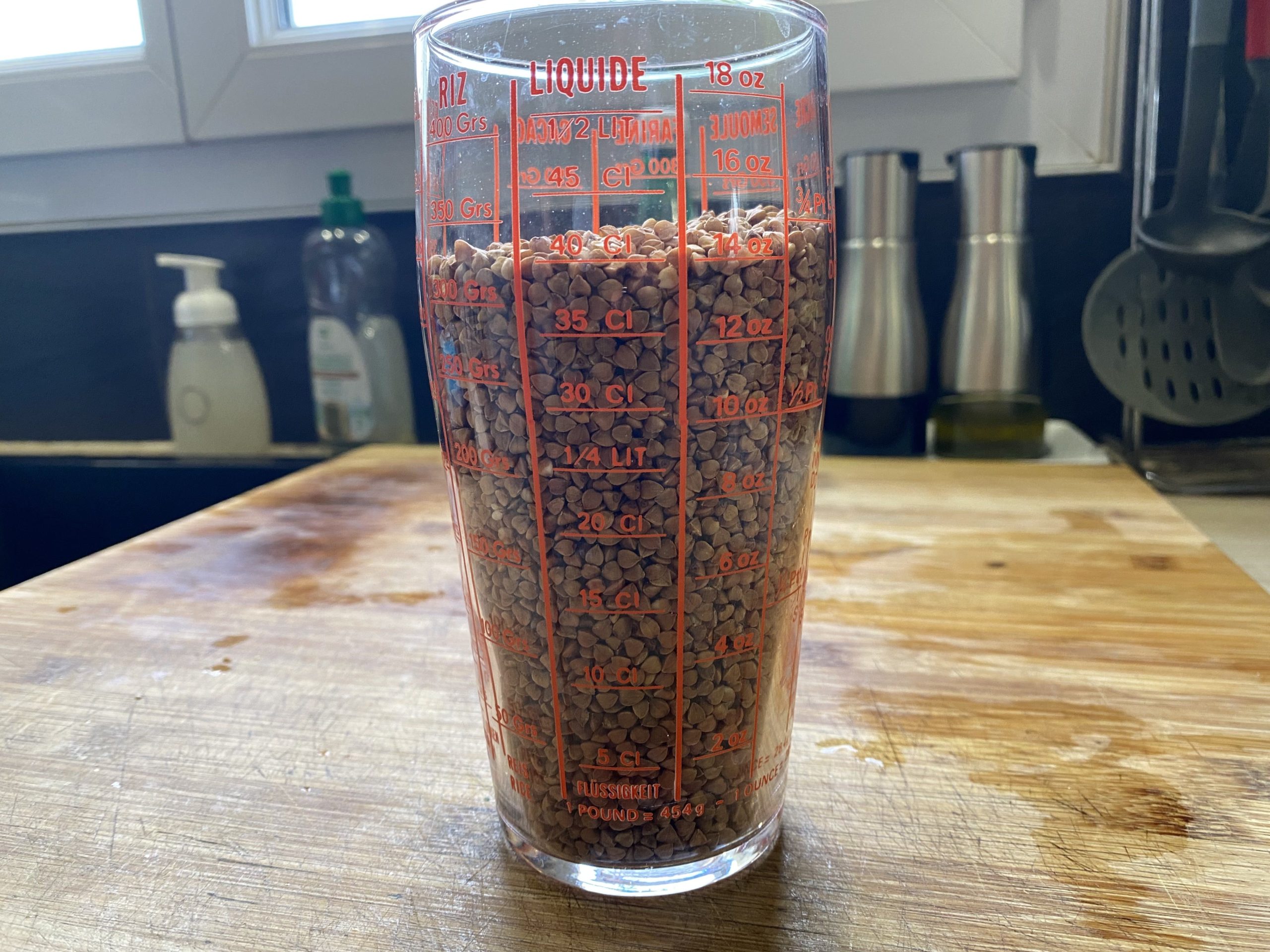 - Mettre le sarrasin sec dans un verre doseur et relever son VOLUME (ici 40cl)