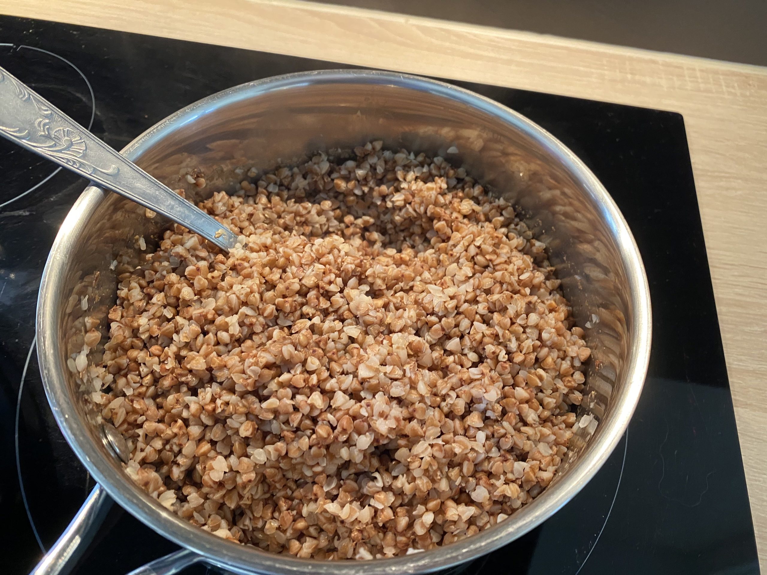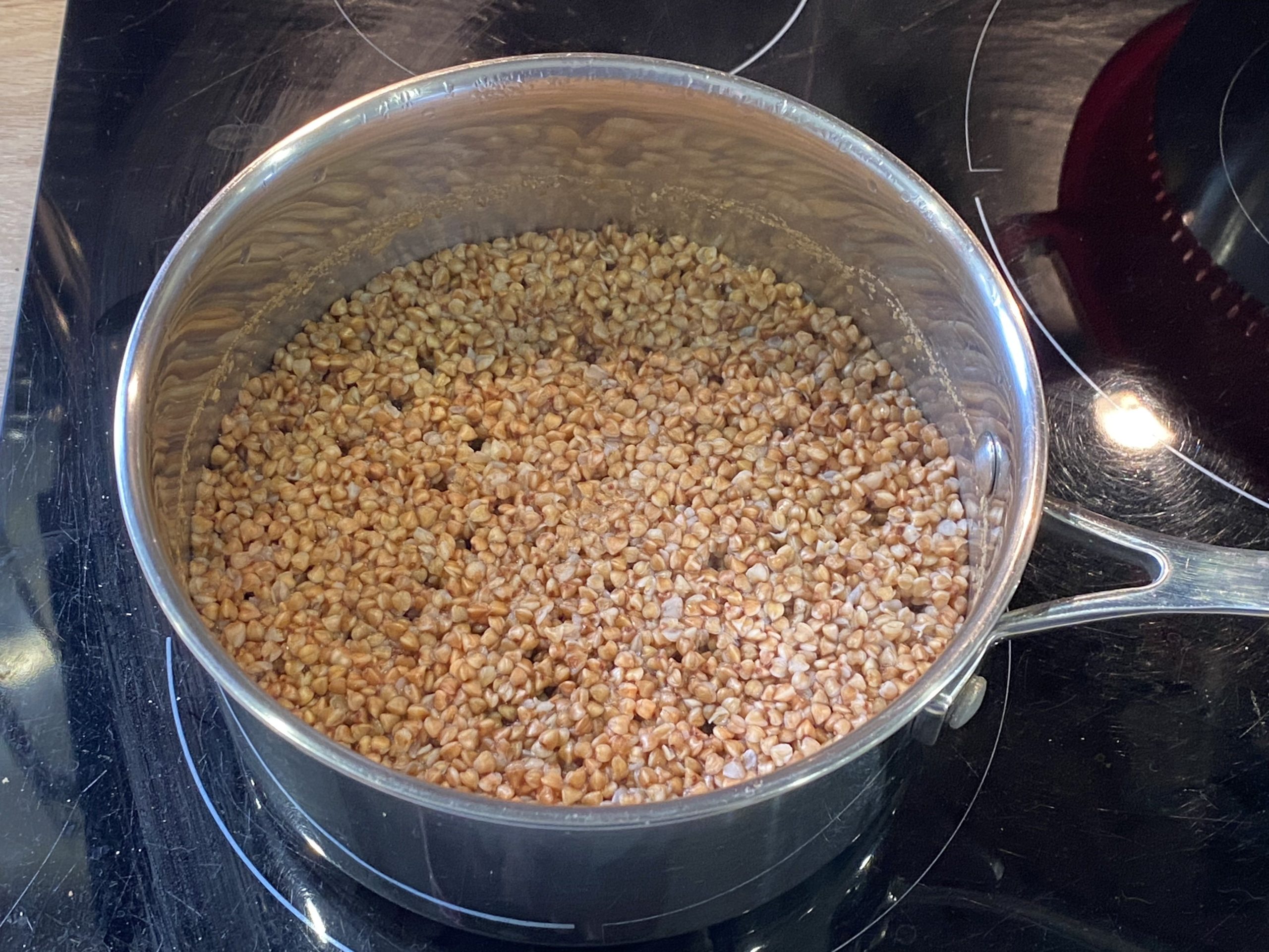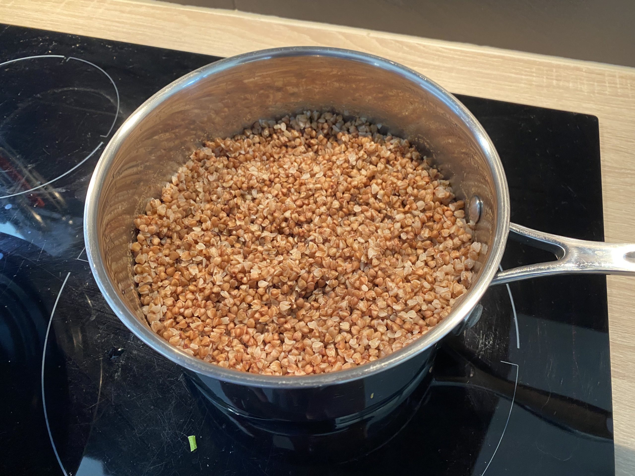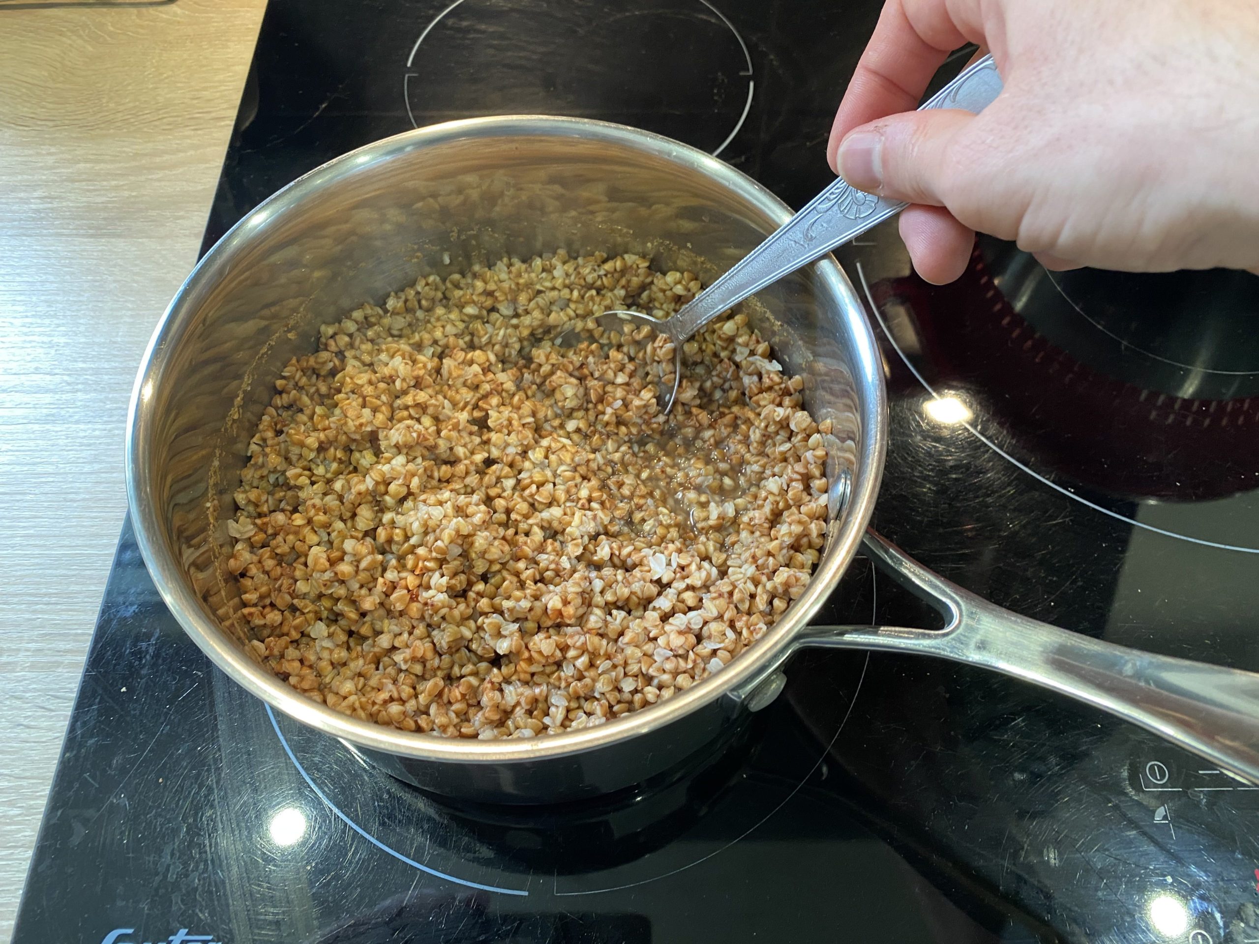 - A la fin de la cuisson, remue bien les grains de sarrasin.
