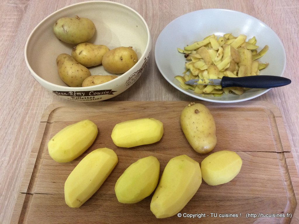 - Prépare tes pommes de terre (variété spéciale vapeur/rissolée, à chair ferme)
