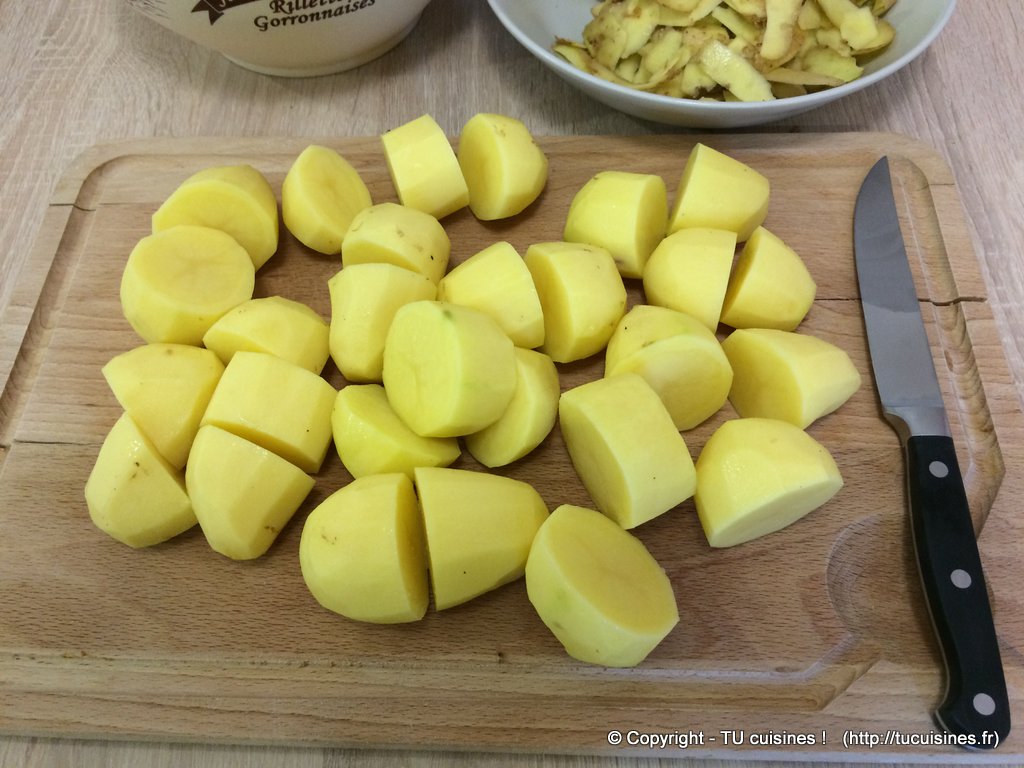 - Épluche les pommes de terre et coupe-les en gros morceaux
