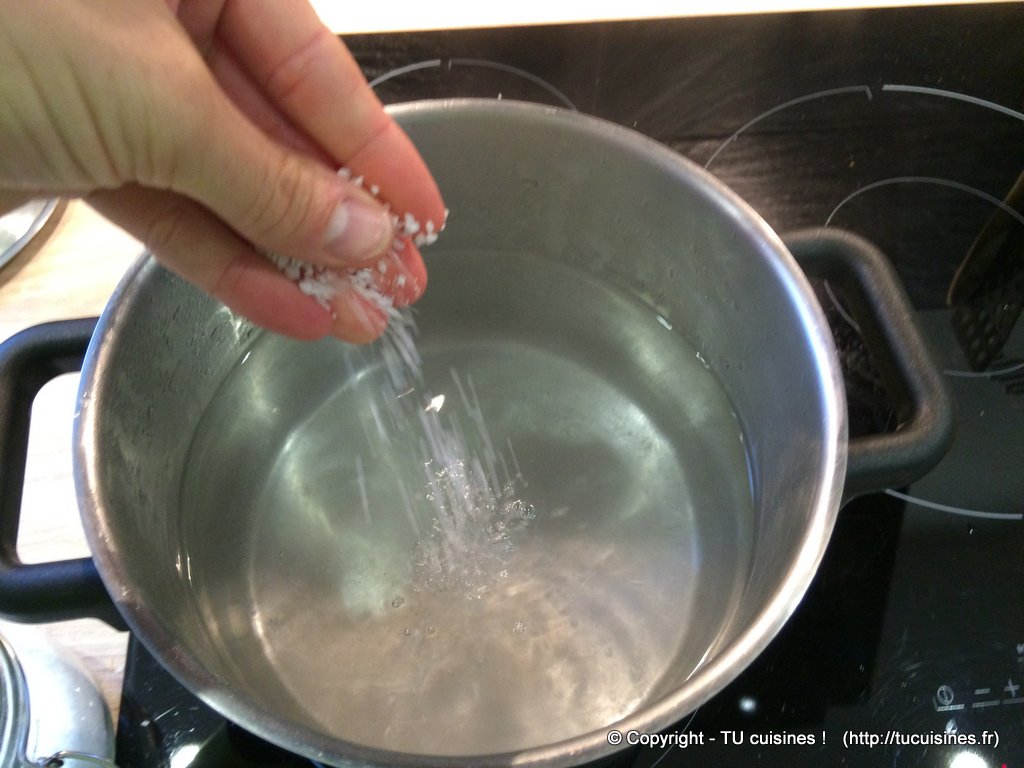 - N'oublie pas de saler ton eau de cuisson avec du gros sel de cuisine !