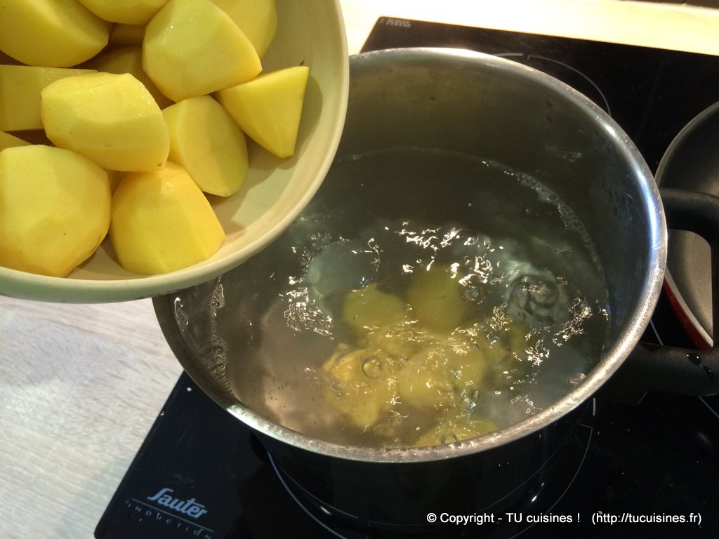 - Verse les cubes de pommes de terre dans l’eau et attend la reprise de l’ébullition