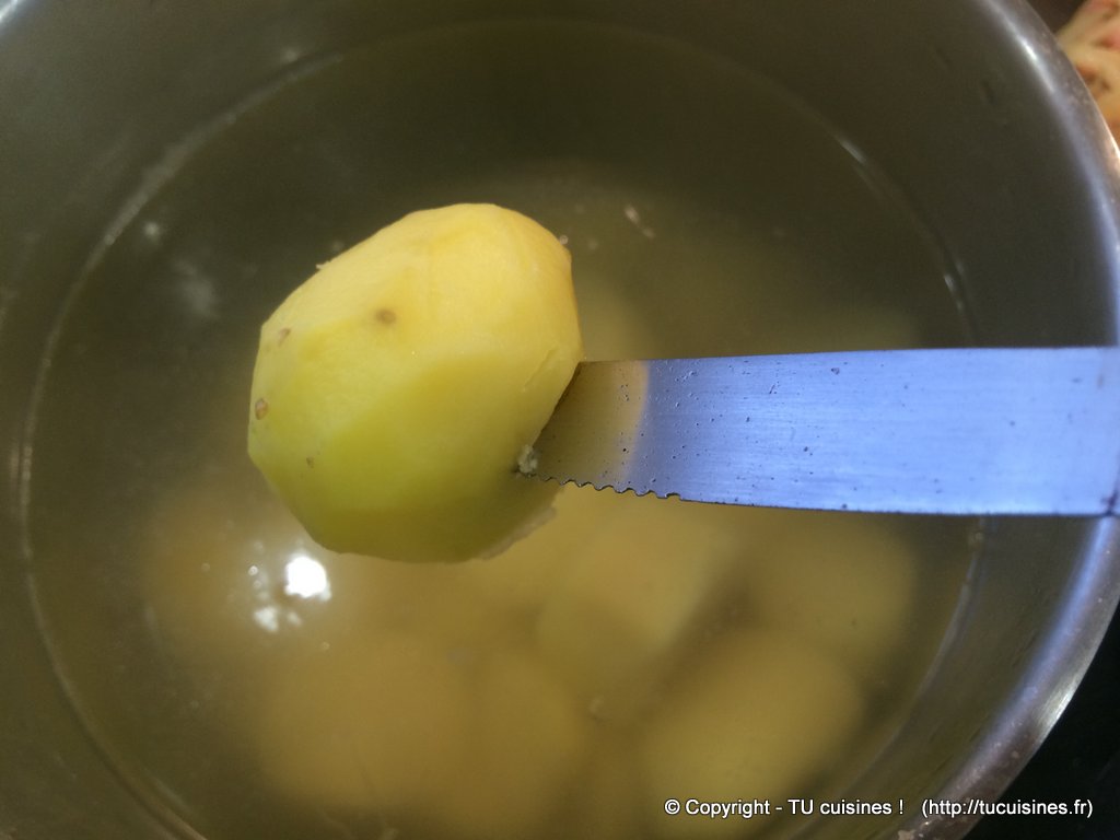 - Pour cela, tu peux planter la lame d'un couteau (ou une fourchette) dedans : si ça rentre et ressort sans difficulté, elles sont bien cuites !