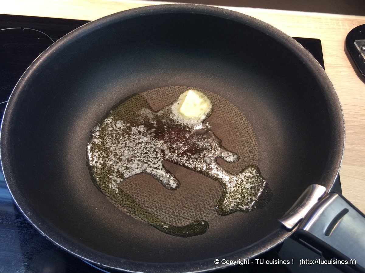 1. Fais fondre dans la poêle chaude 1 grosse noix de beurre.