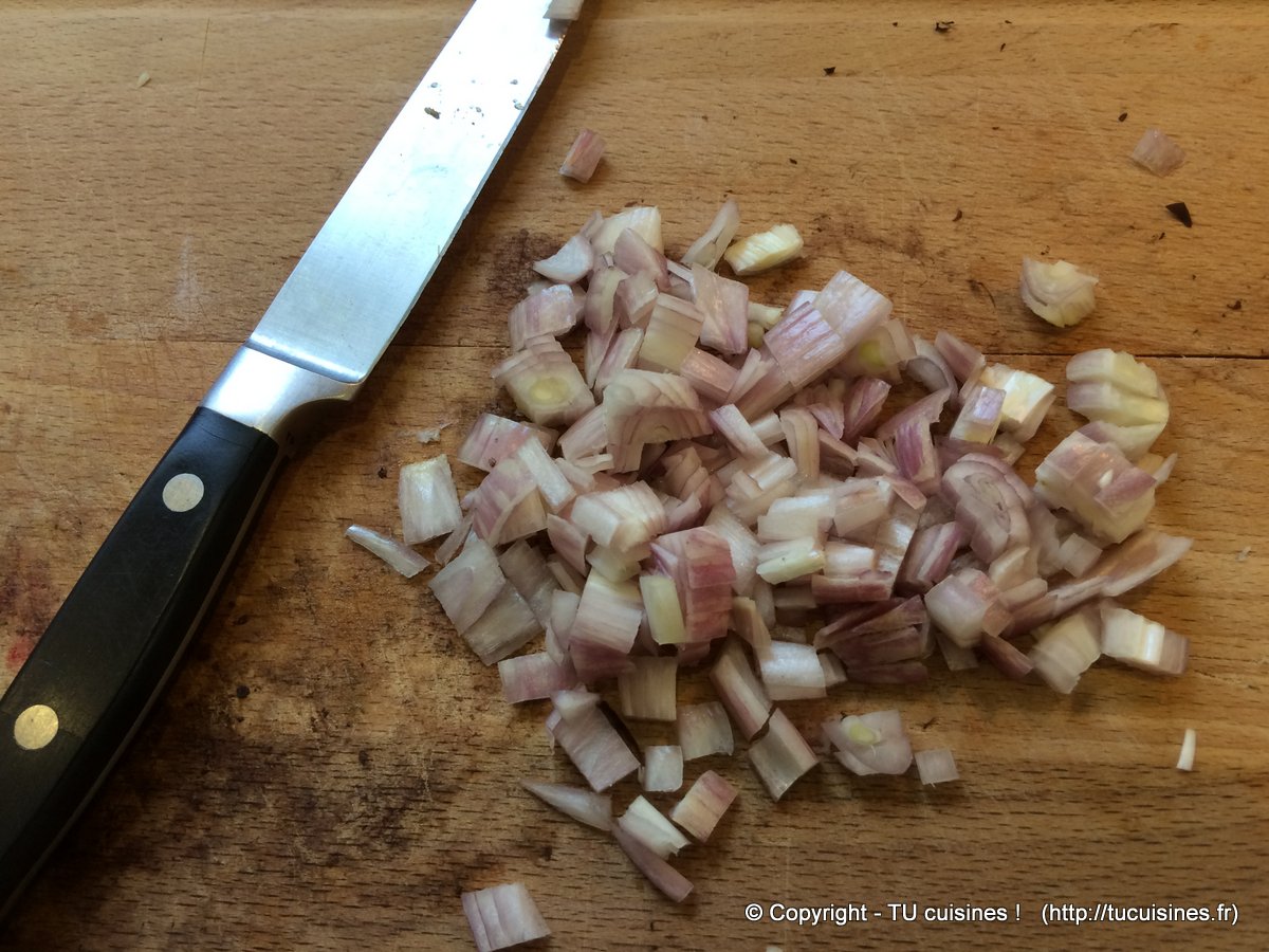 3. Épluche et coupe l'échalote assez finement (mais pas trop).