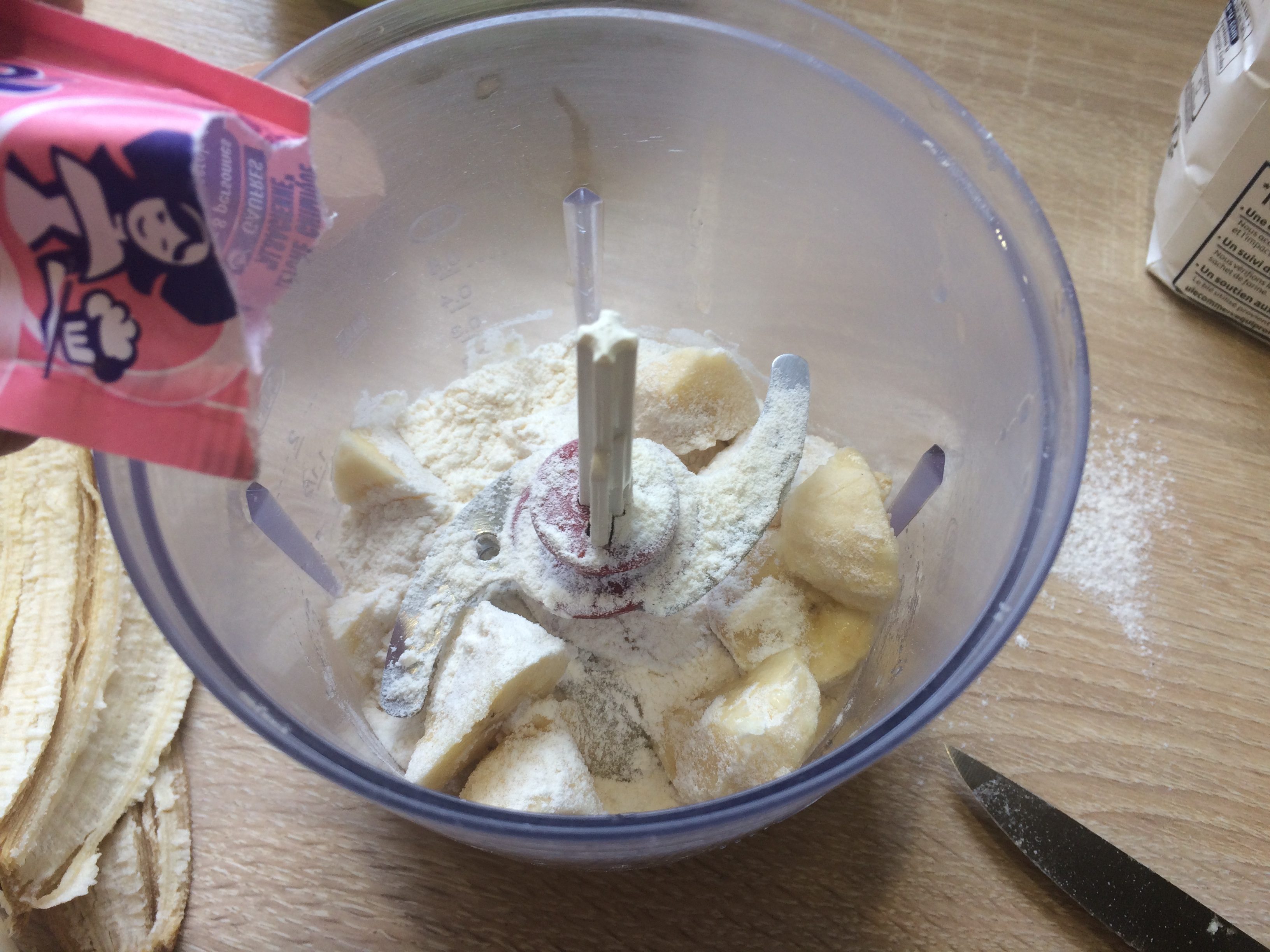 - Epluche la banane et coupe-la en morceaux dans le mixeur