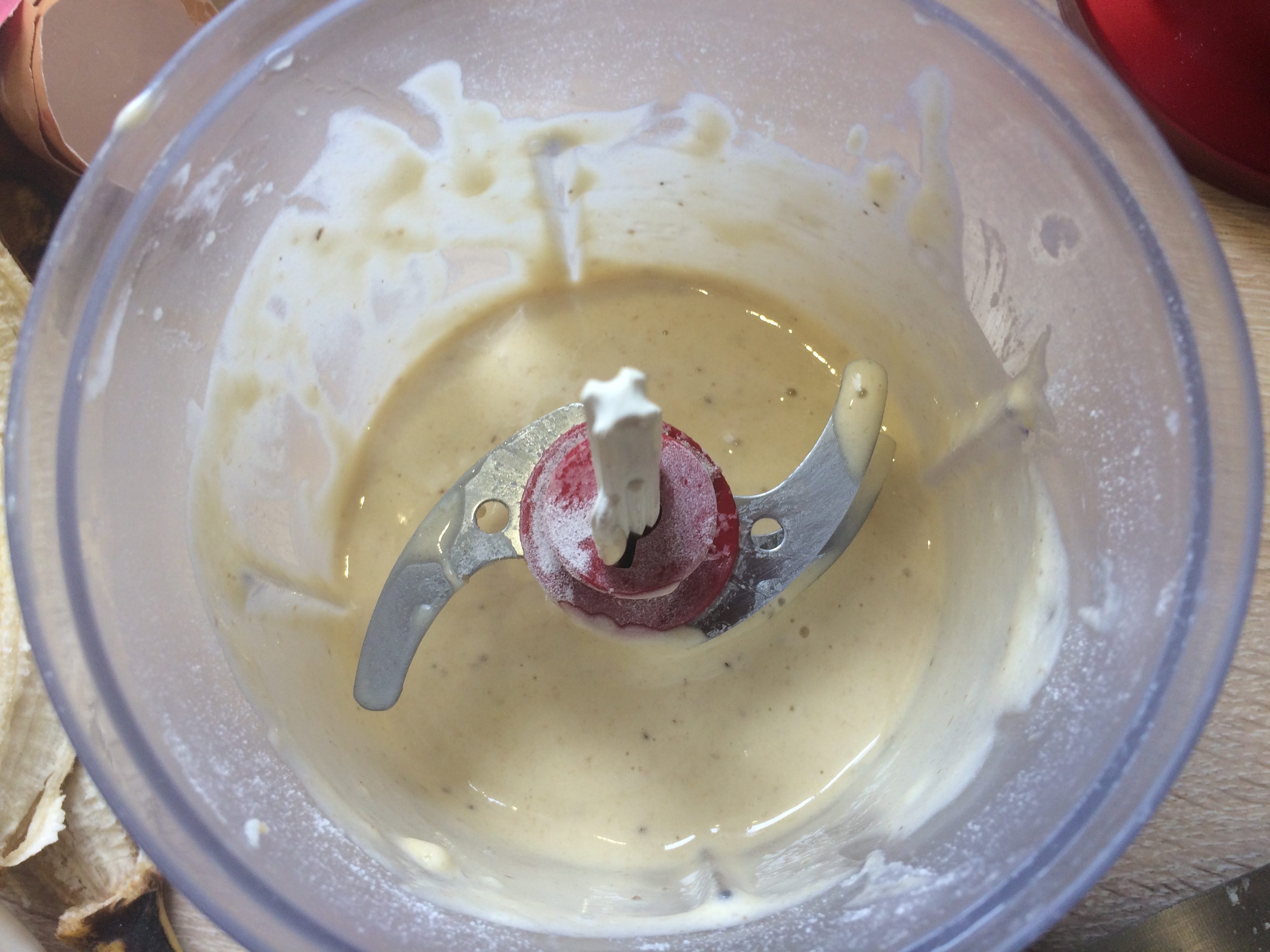 - Mixe l'ensemble des ingrédients pendant une bonne minute avec ton mixeur, jusqu'à obtenir une pâte bien homogène.