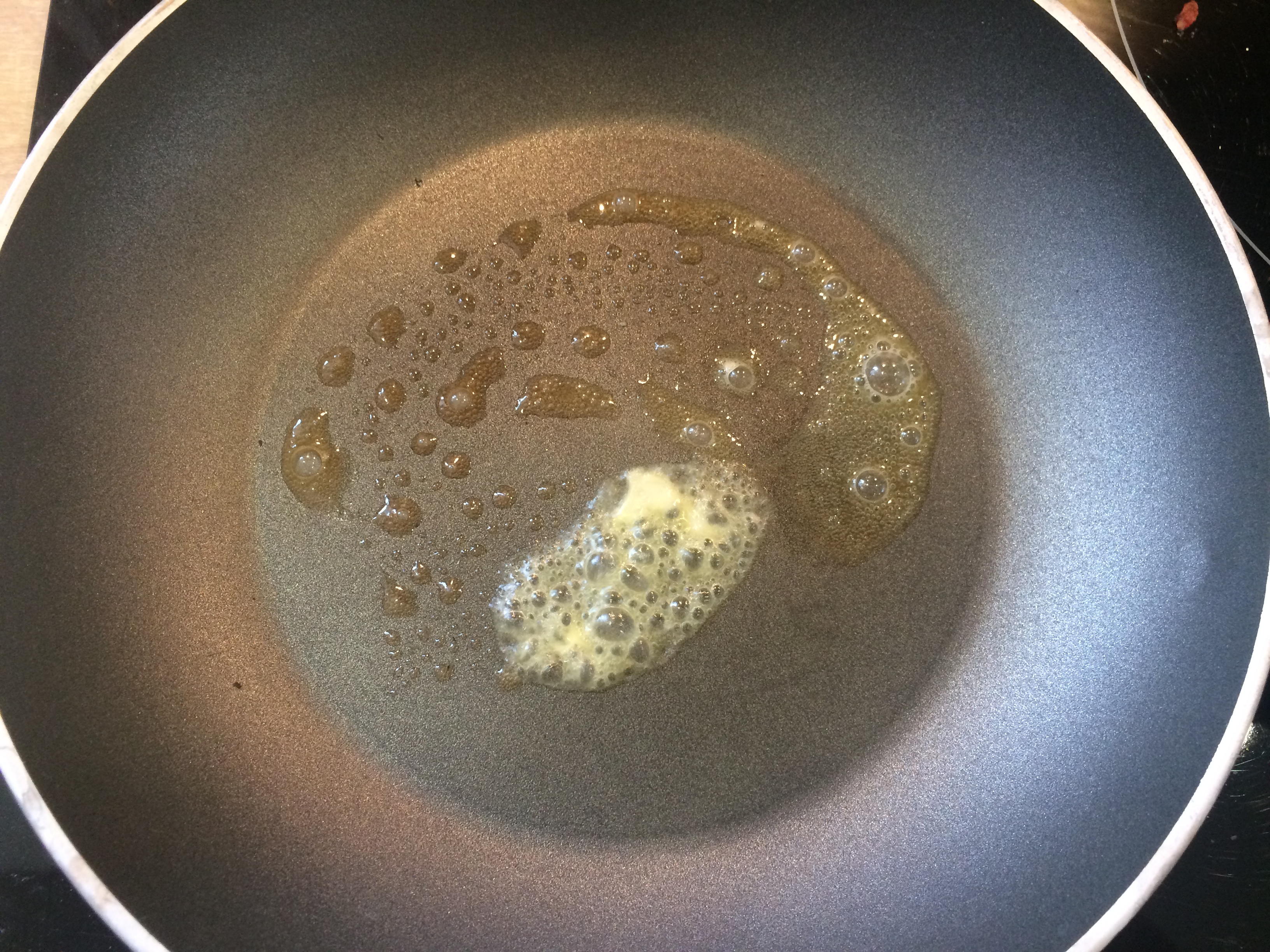- Fais chauffer une peu de matière grasse dans une poêle (beurre ou huile étalée avec un sopalin) à feu moyen/vif