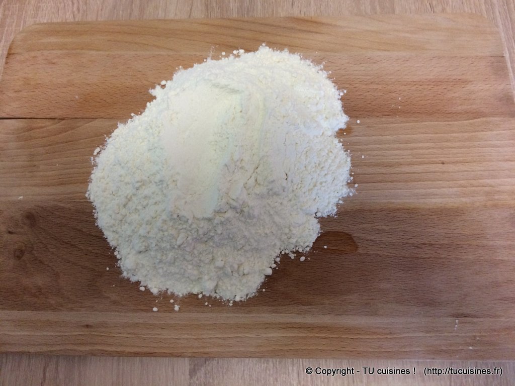 - Mets les 250 g de farine en tas sur ton plan de travail.