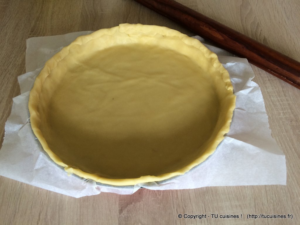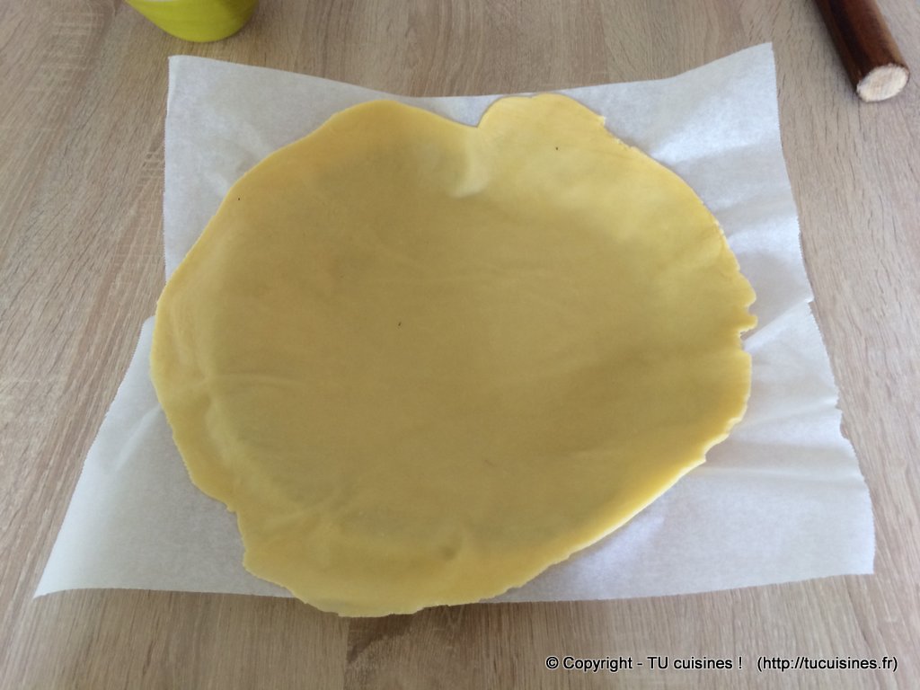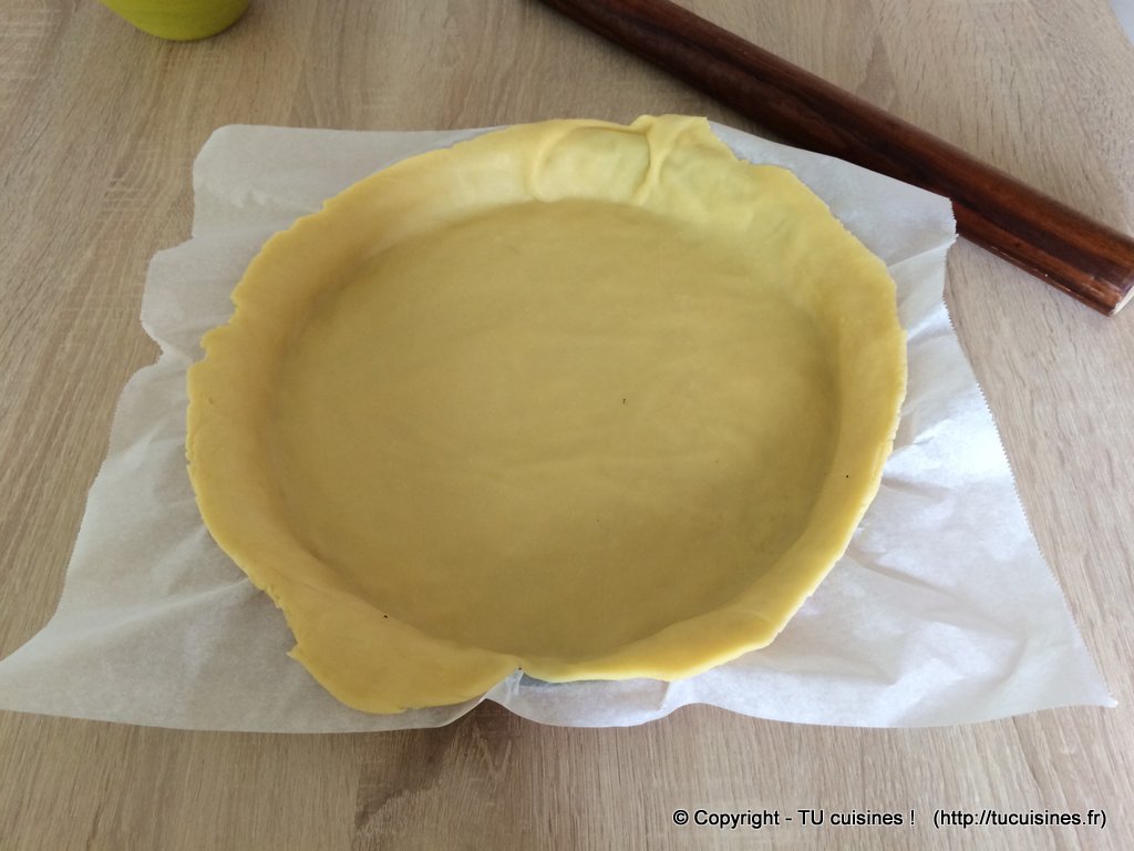 - Je te conseille fortement d'étaler ta pâte sur un morceau de papier sulfurisé. Tu pourras ainsi directement la positionner dans le moule à tarte sans risquer de la déchirer... A défaut, penses au moins à l'étaler sur quelques cuillères à soupe de farine.