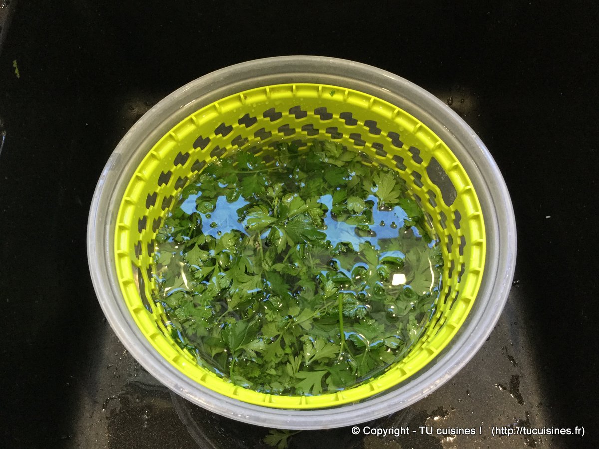 - Garde le persil haché de côté dans un bol en attendant le suite.