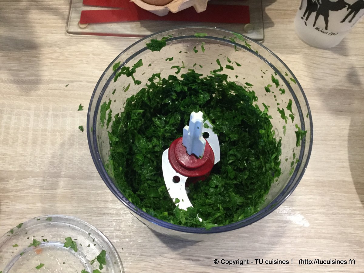 - … et presse-les (ou coupe-les très très fin) dans le persil haché