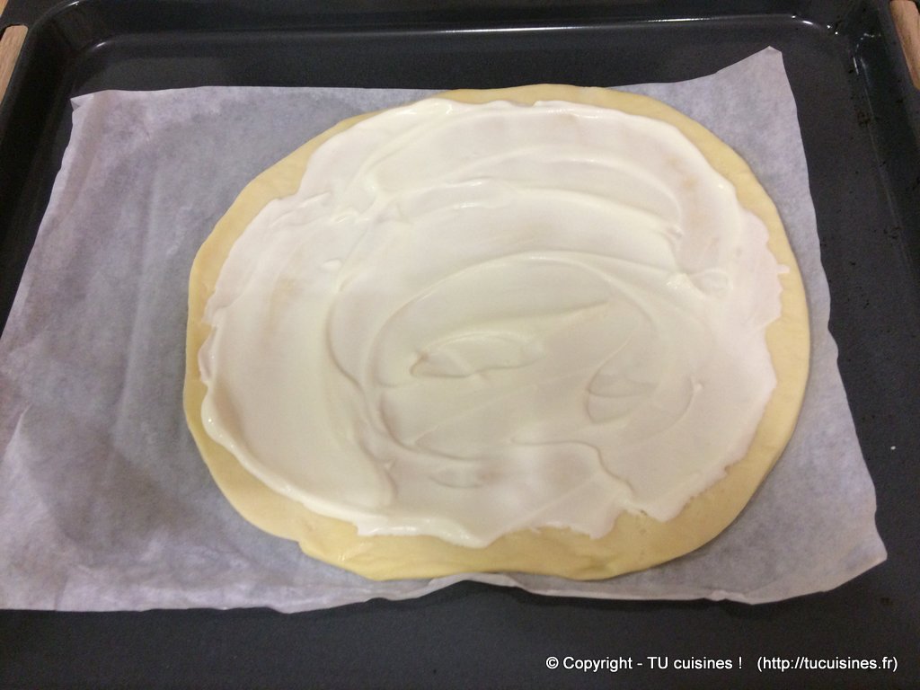 2. Étale la crème fraîche sur le fond de pâte