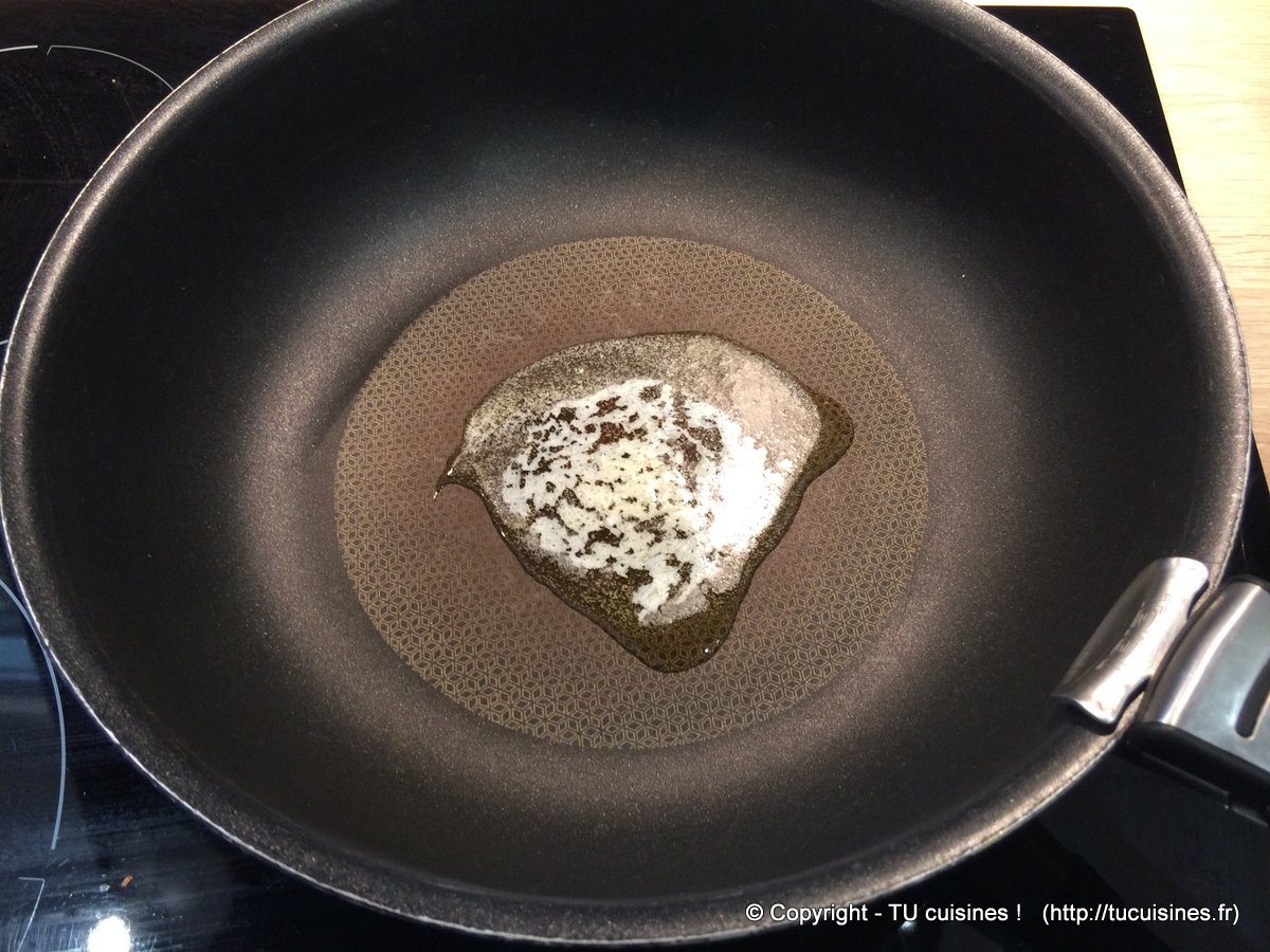 - Fais fondre une grosse noix de beurre à feu moyen (feu 6/12) dans la poêle.