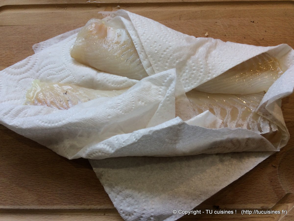- Rince les filets de poisson et éponge-les avec quelques feuilles de papier absorbant.