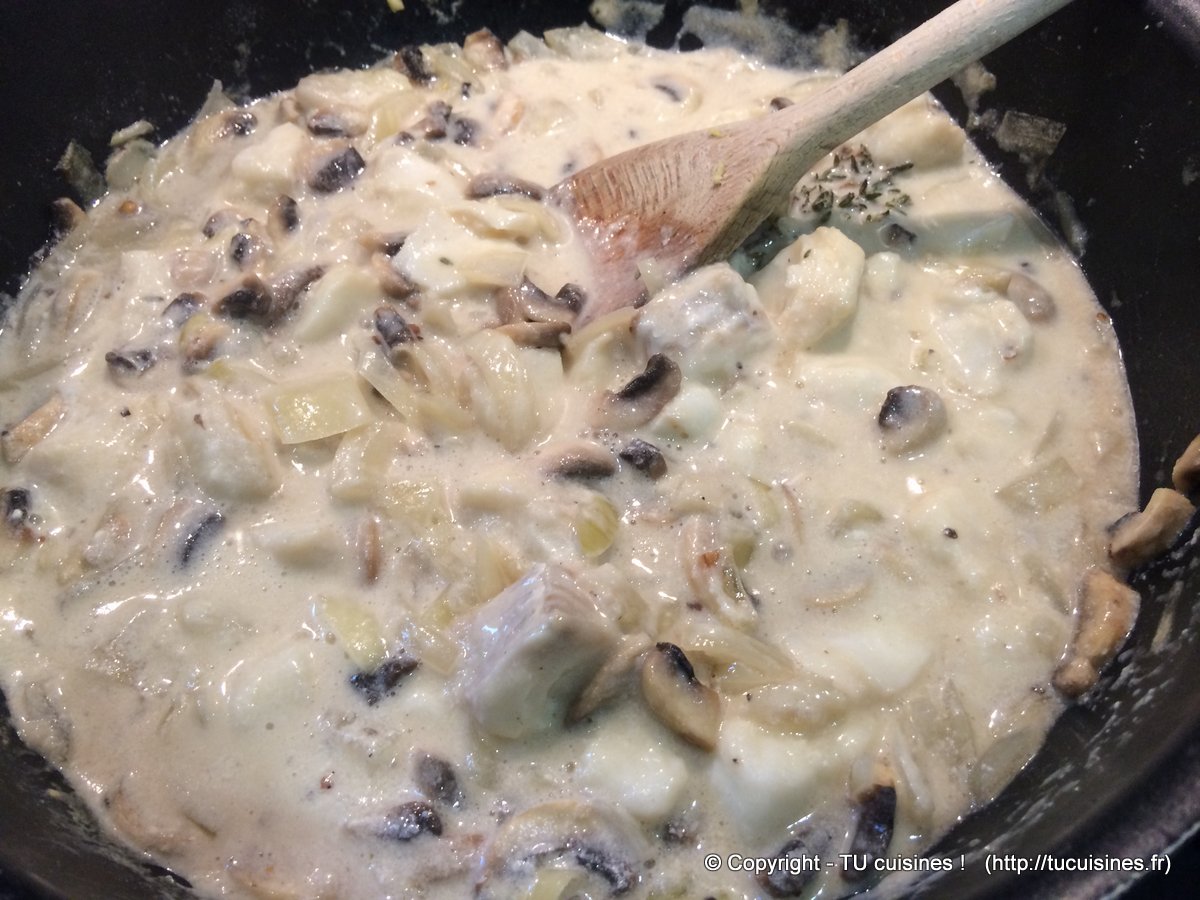 - Baisse sur feu doux et ajoute la crème fraîche