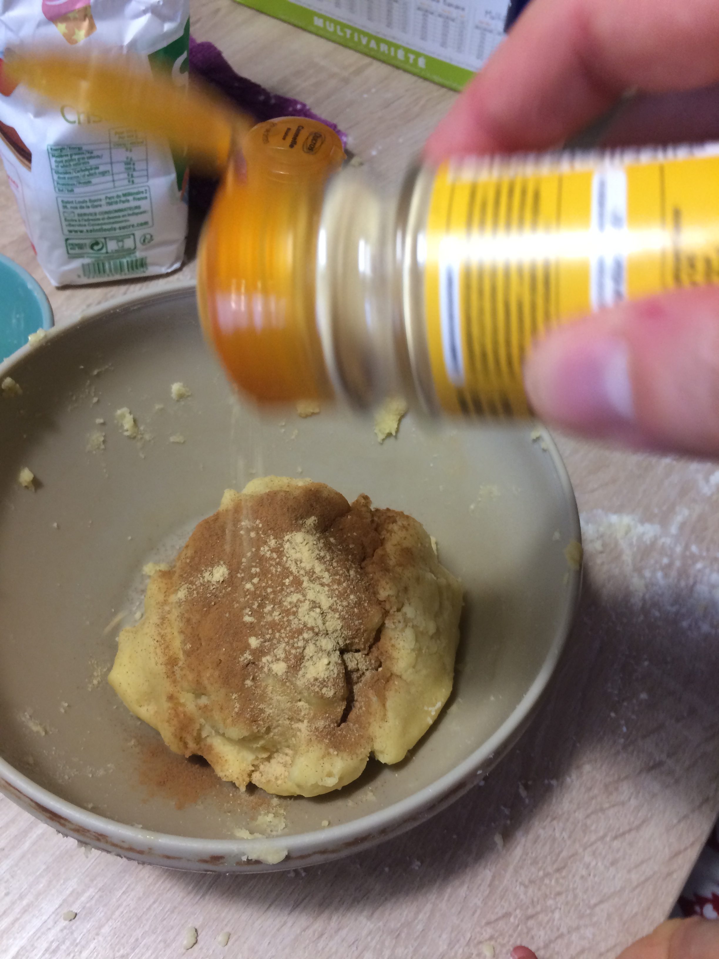 - Travaille encore ta pâte pour bien incorporer les épices dedans.