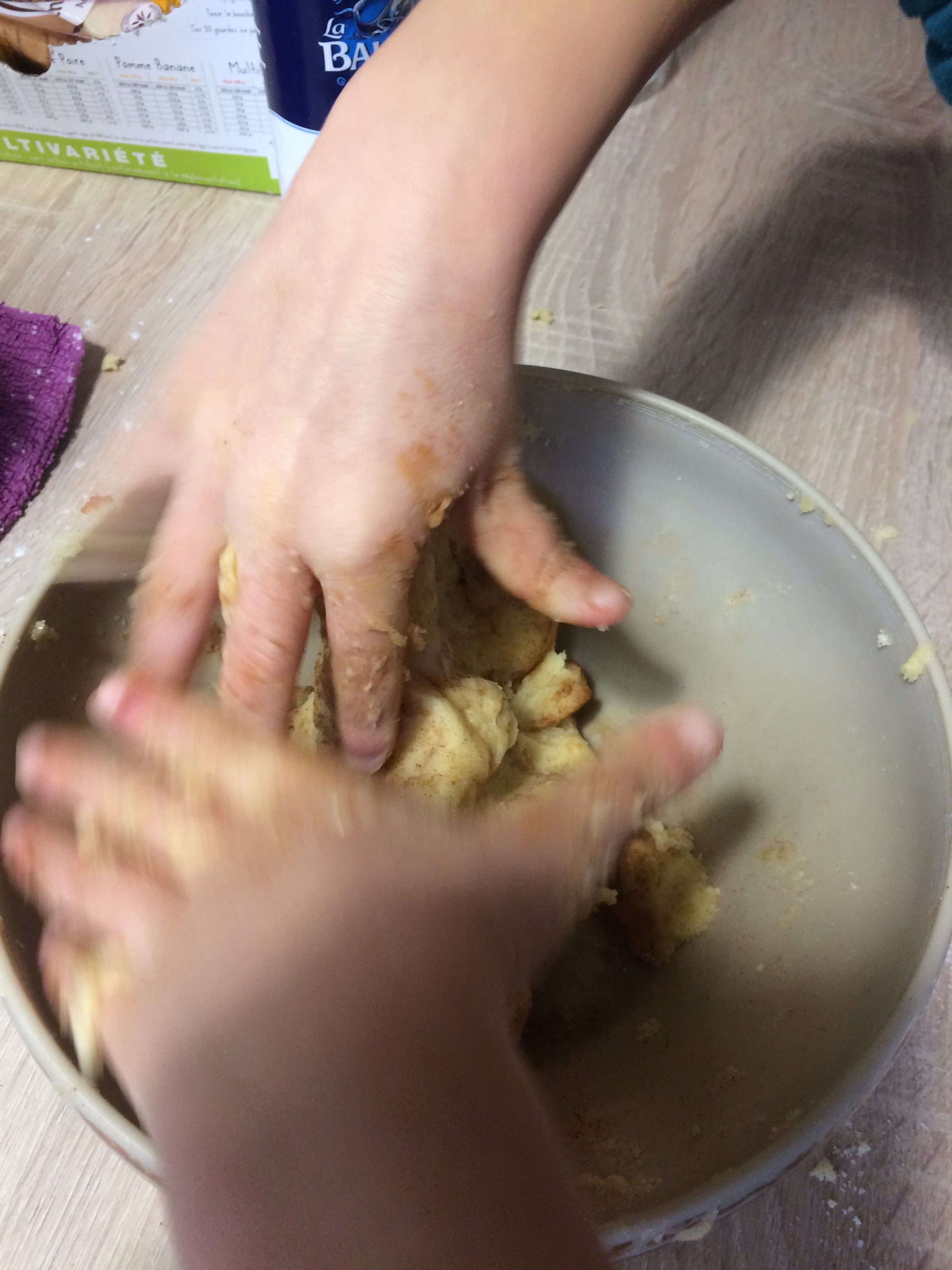 - … pour bien tout incorporer à la pâte (ça colle)…