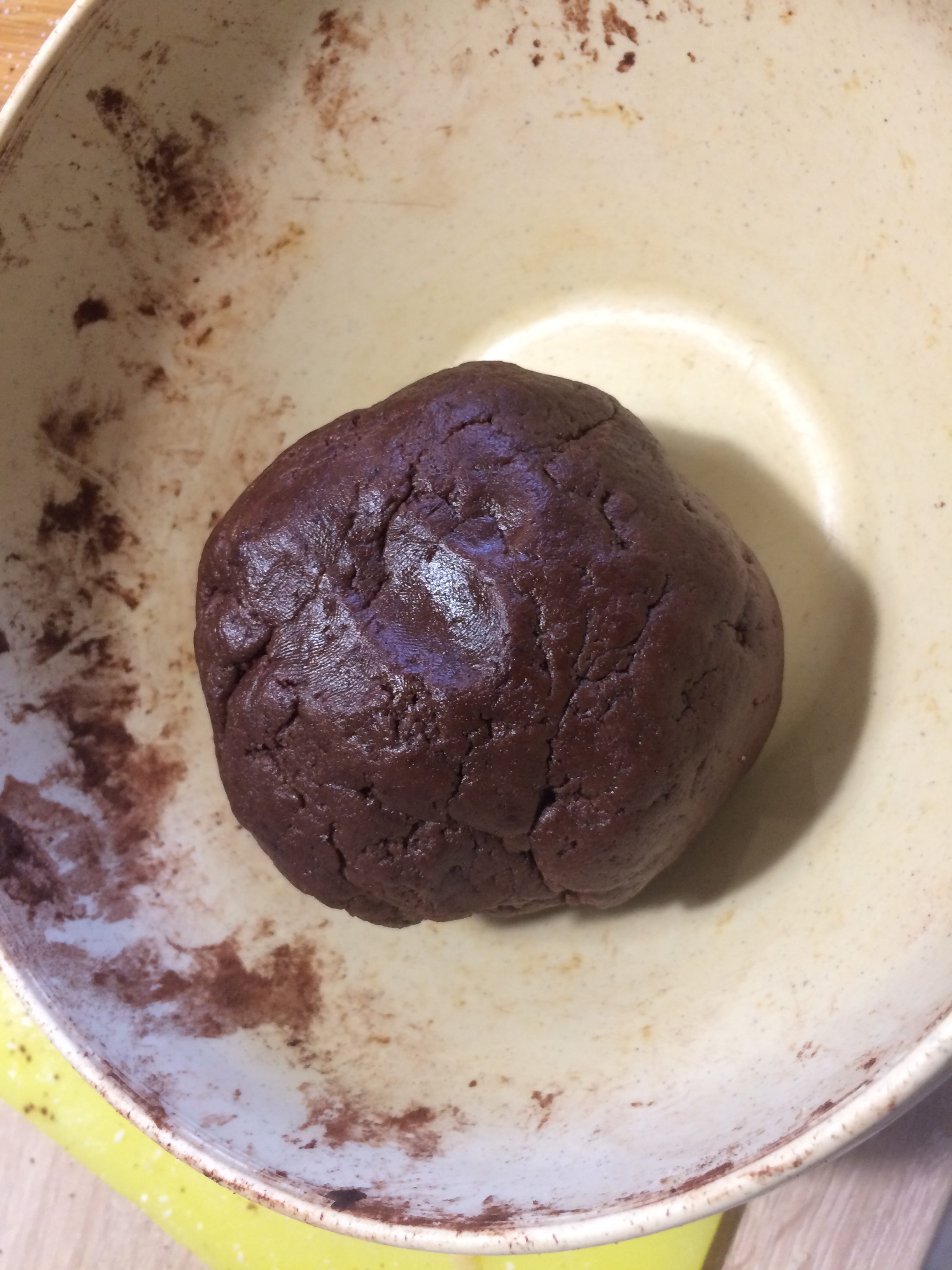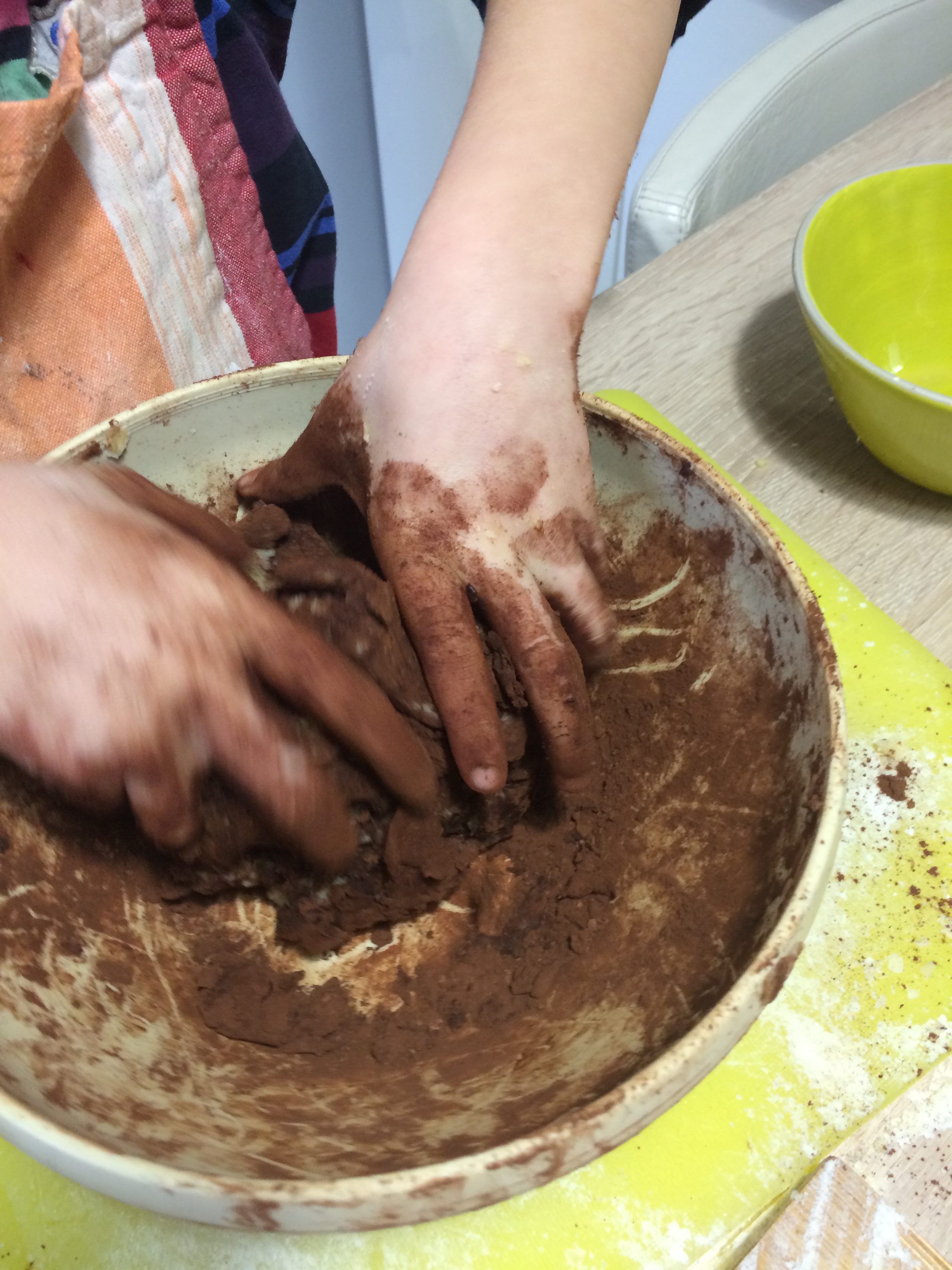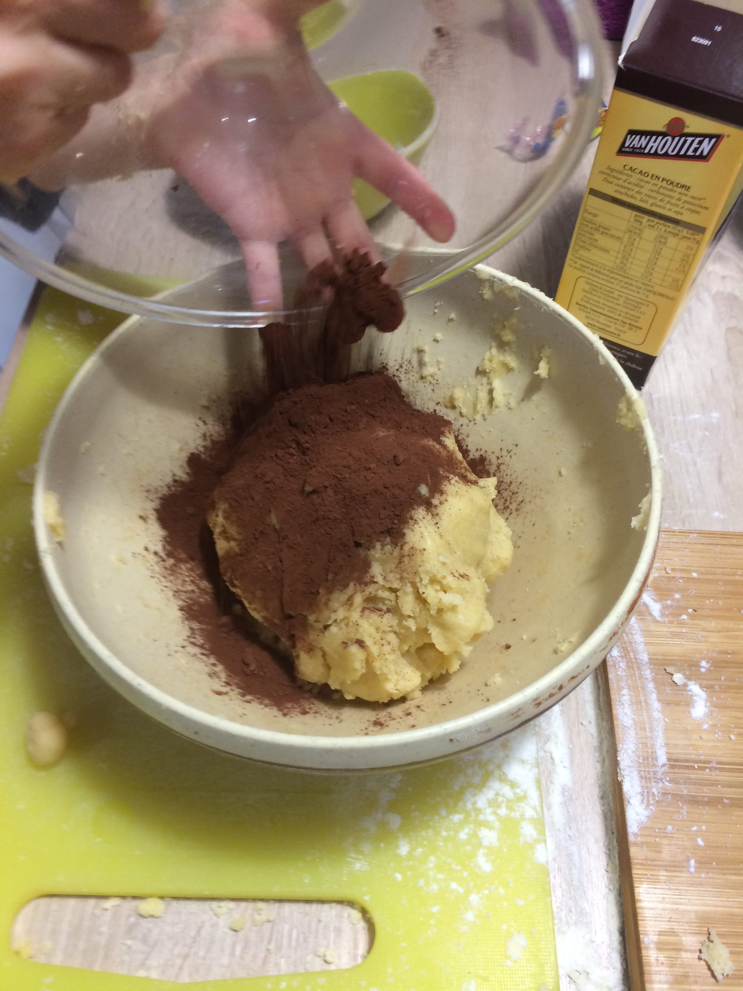 - Travaille encore ta pâte pour bien incorporer le cacao dedans.