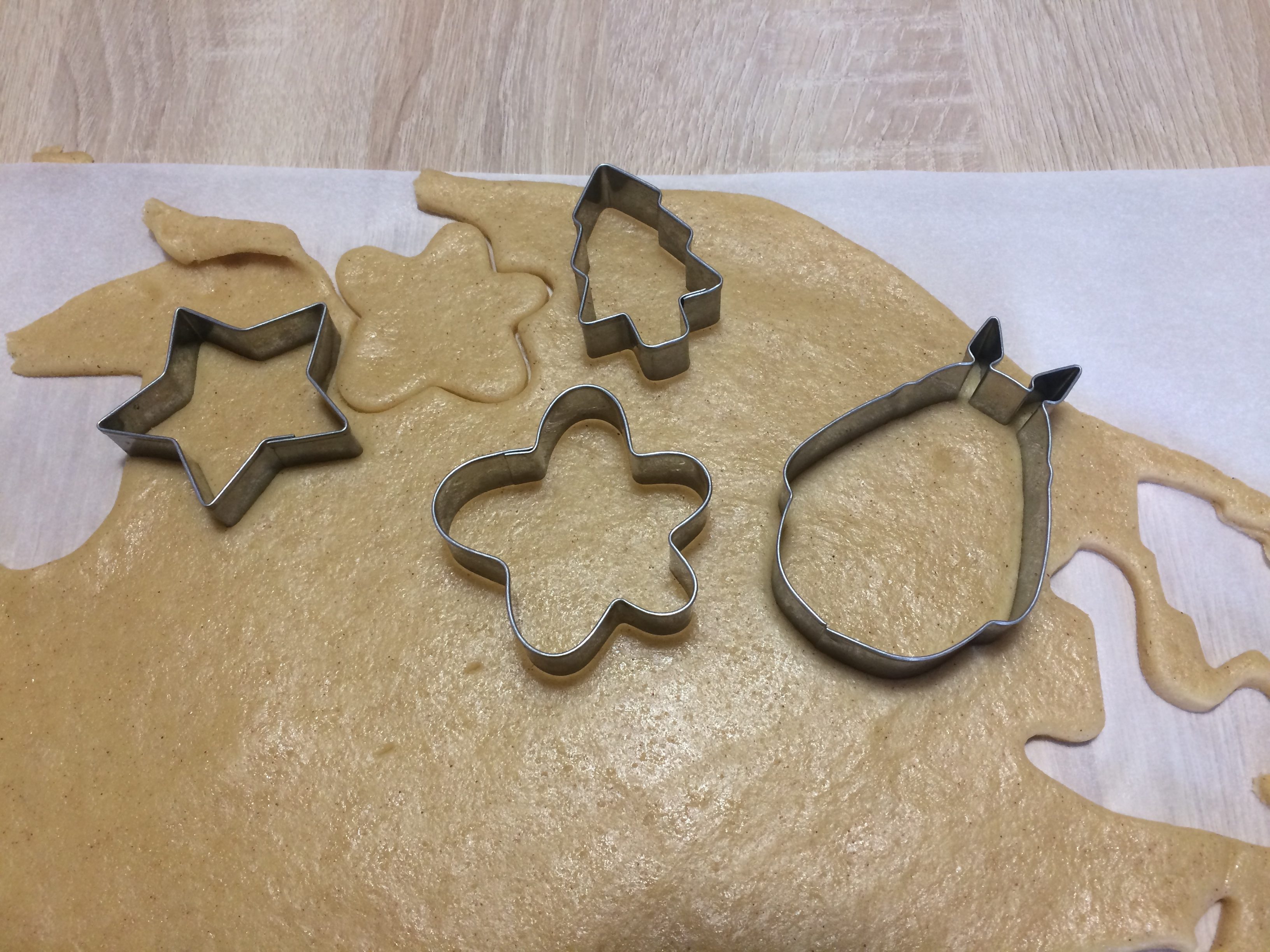 - Dépose les formes découpées sur une plaque allant au four, sur du papier cuisson.