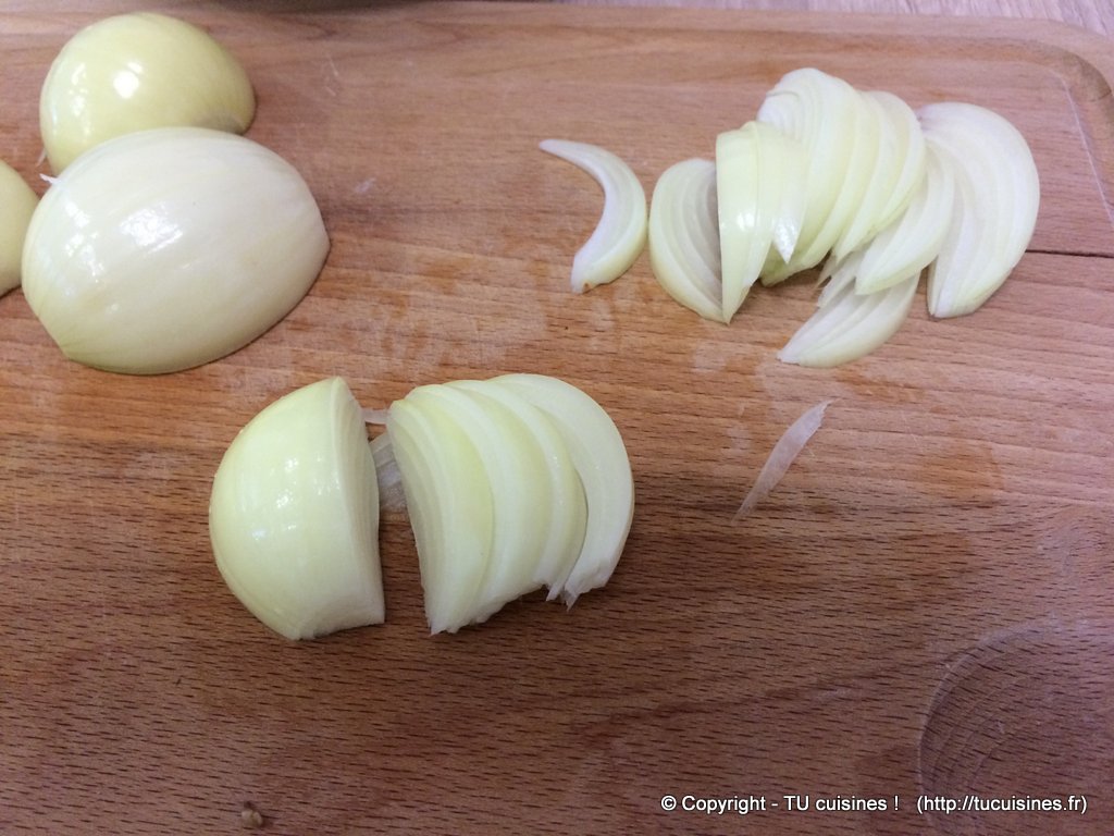 2. Ma technique consiste d'abord à couper les oignons en 4 quartiers, puis à nouveau chaque quartier en fines tranches.