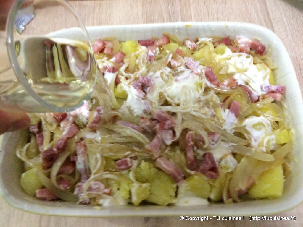 2. Je te conseille également d'arroser le tout avec un petit verre de vin blanc sec (celui que tu boiras en accompagnement de ta tartiflette fera parfaitement l'affaire).